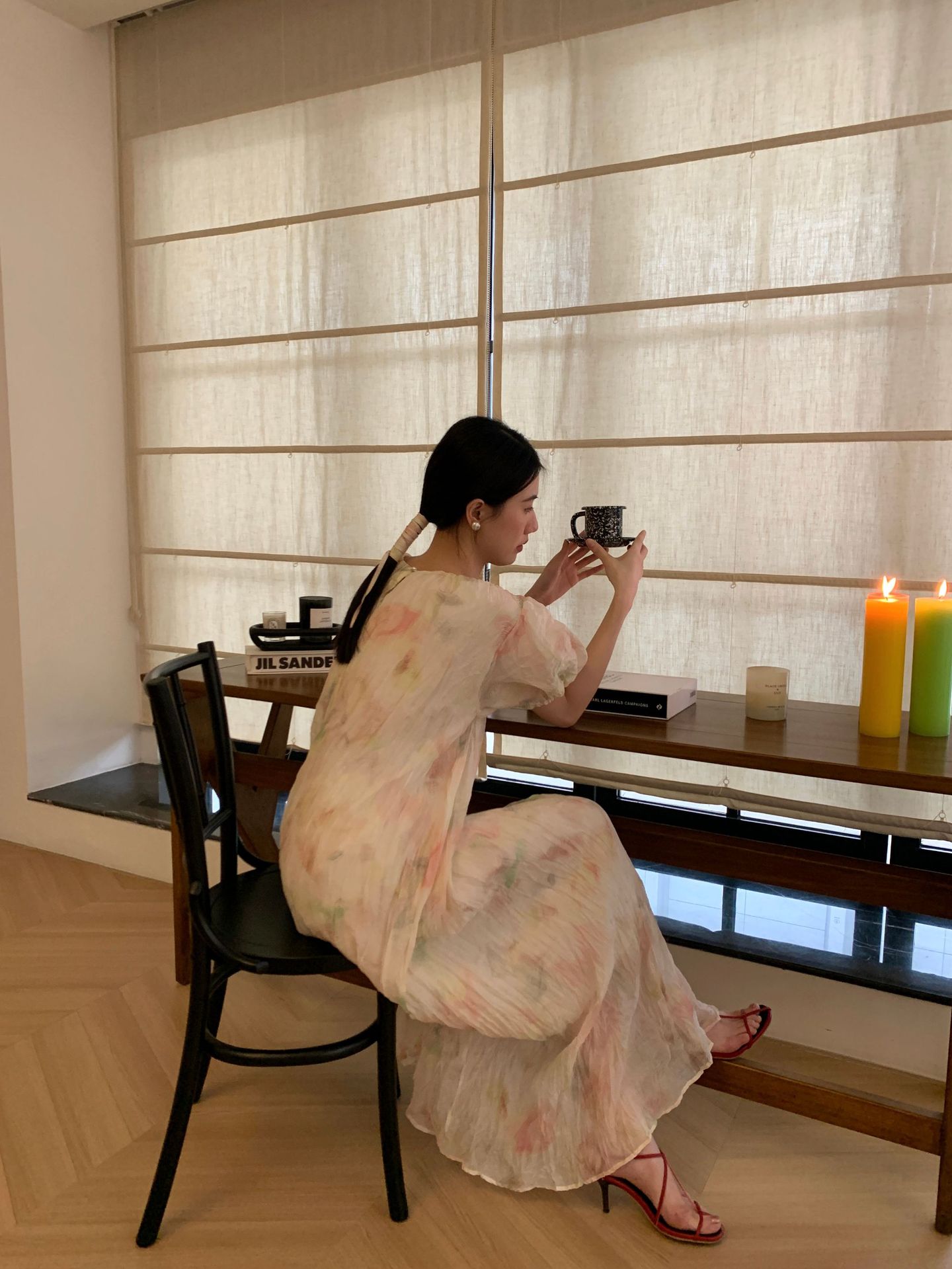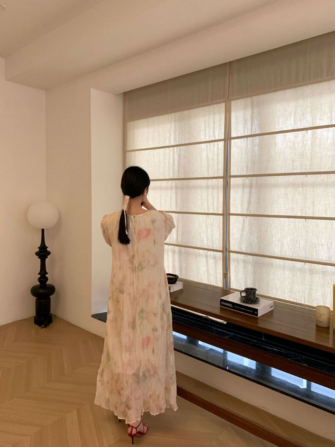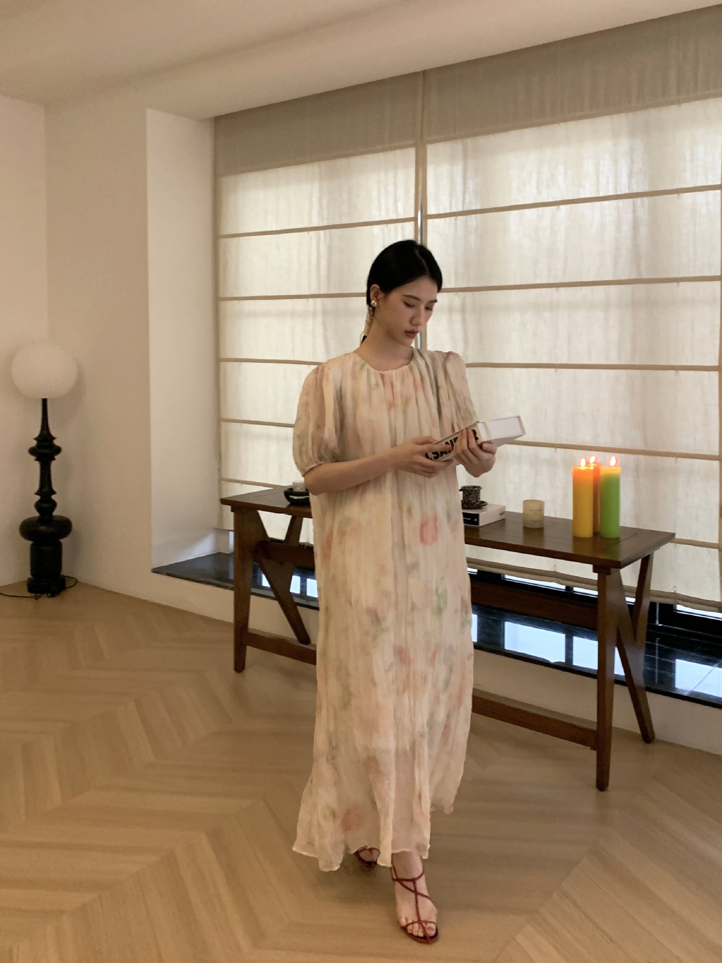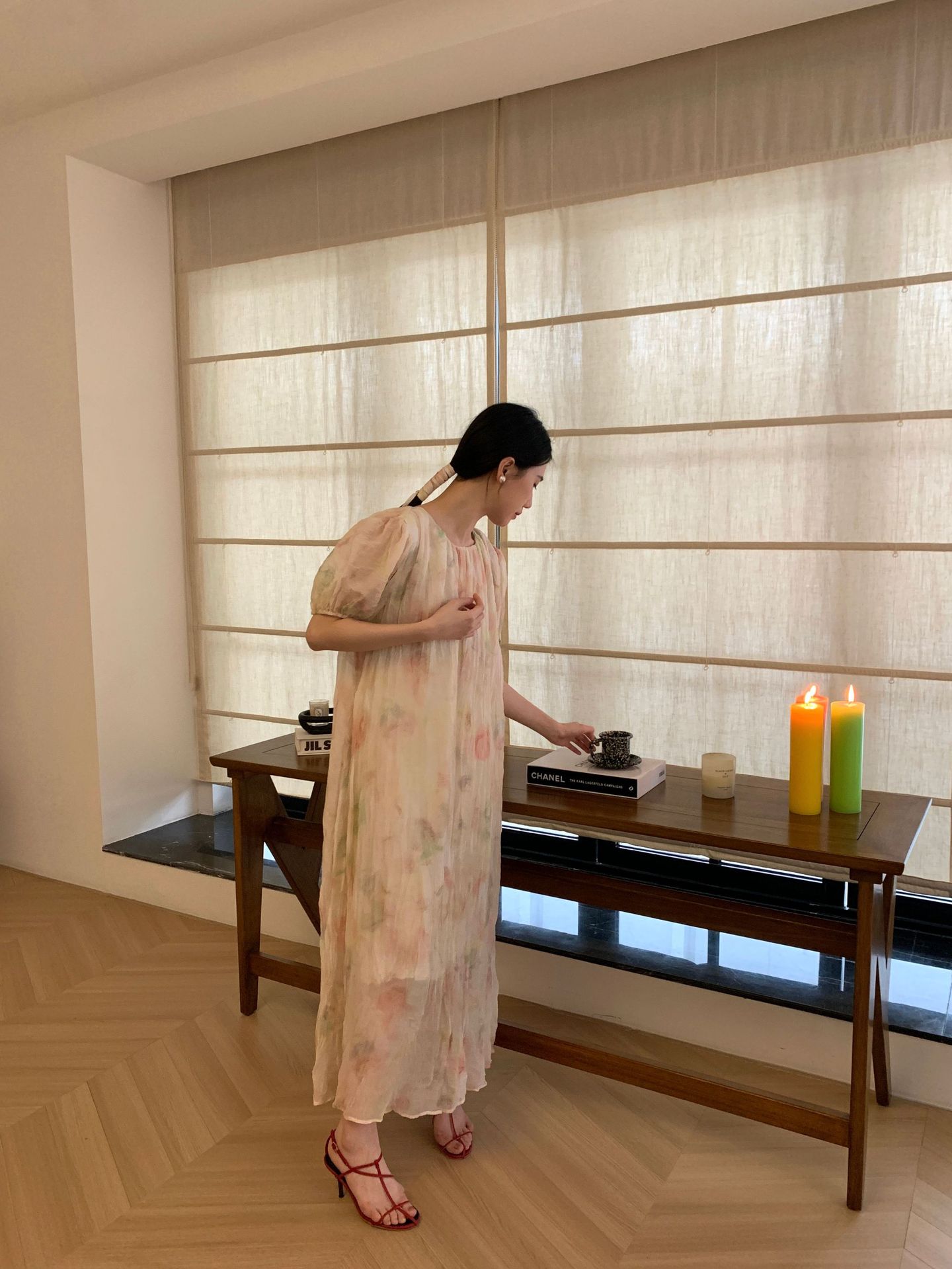 诠释美 NEW OPEN法式温柔天丝连衣裙女夏褶皱宽松雪纺裙82677