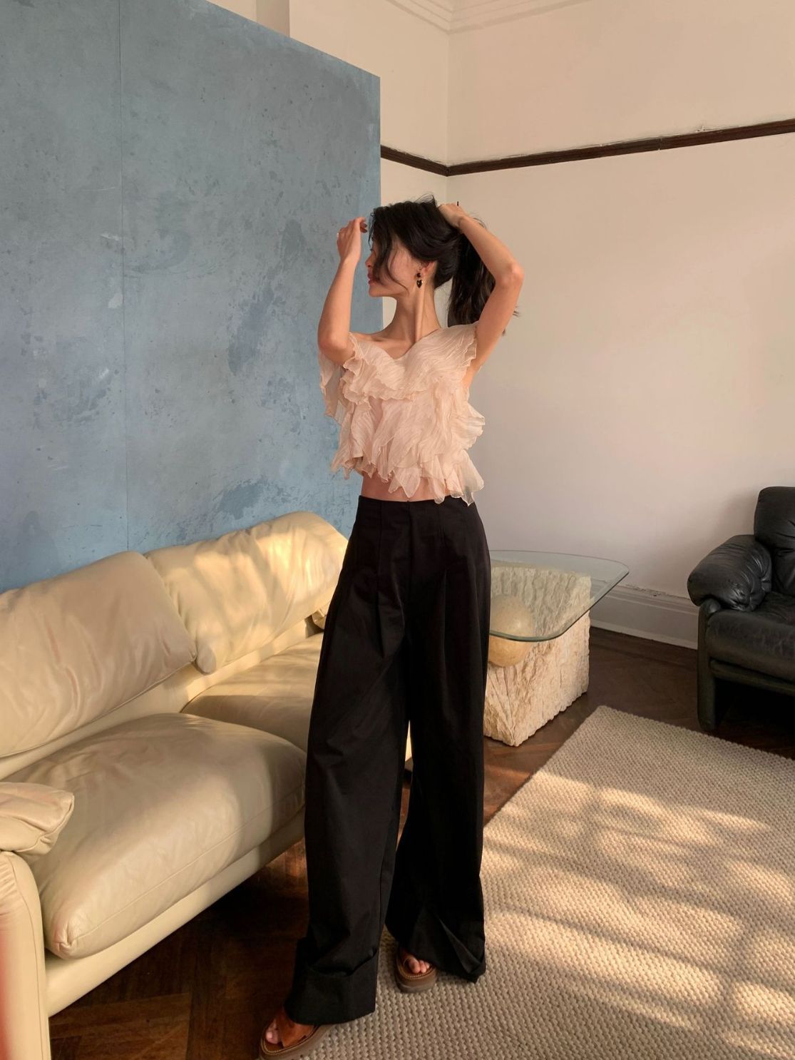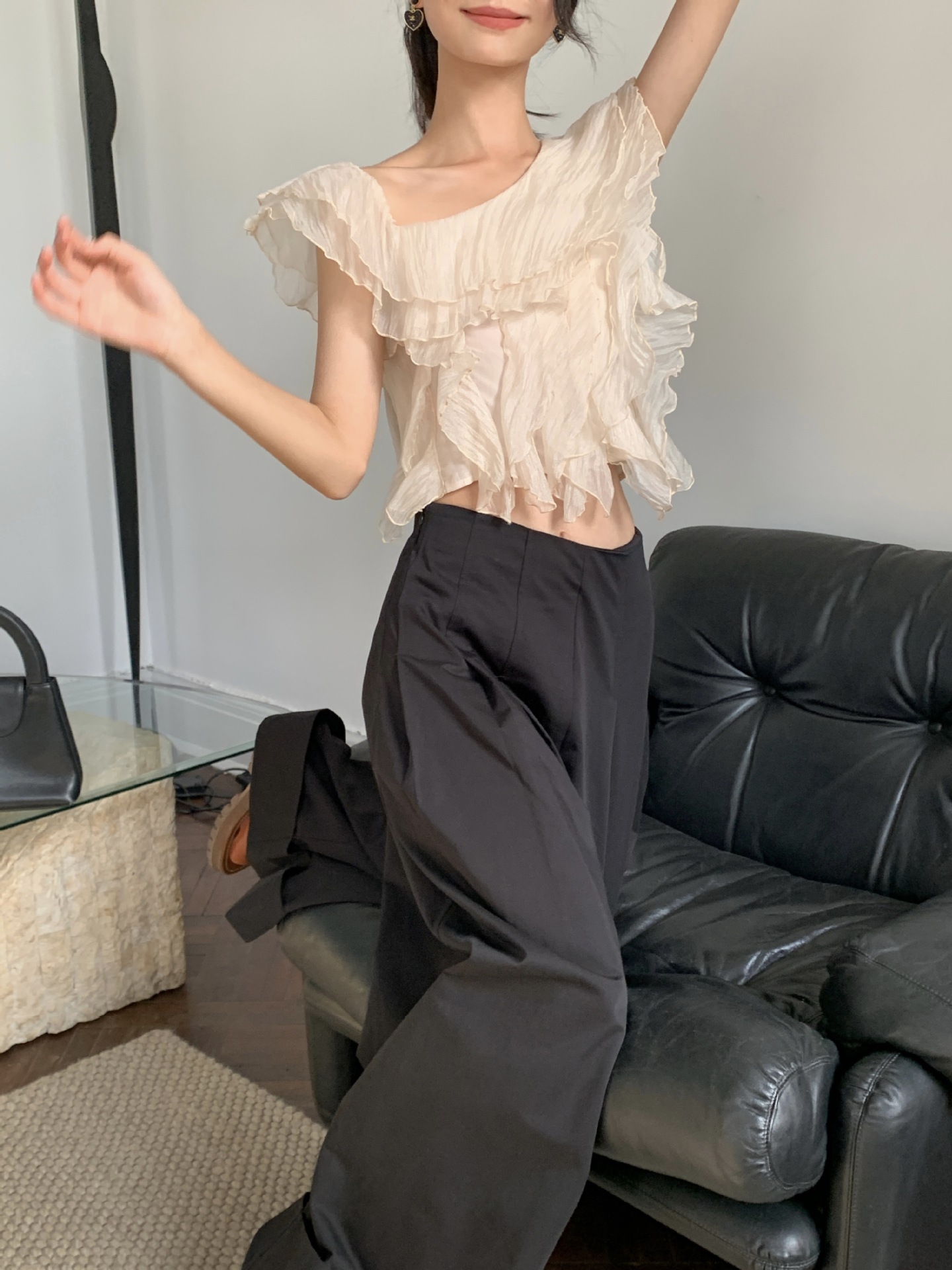 诠释美NEW OPEN薄款大喇叭阔腿裤女夏休闲韩版高腰宽松82395