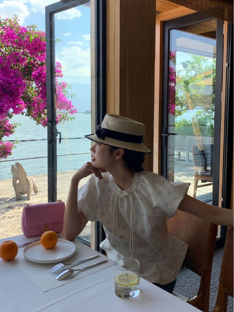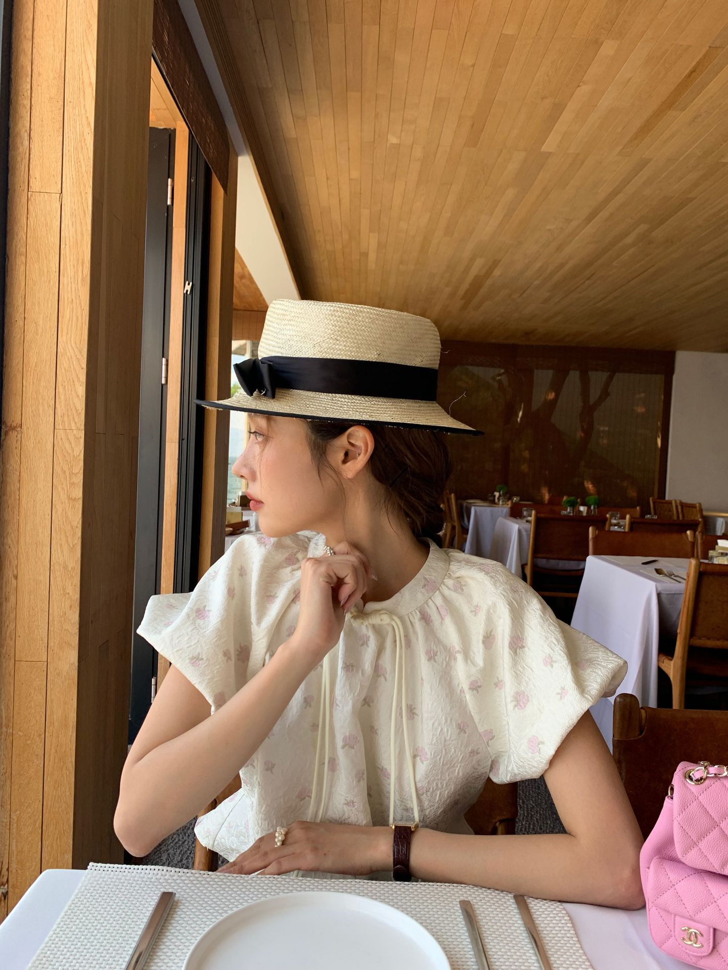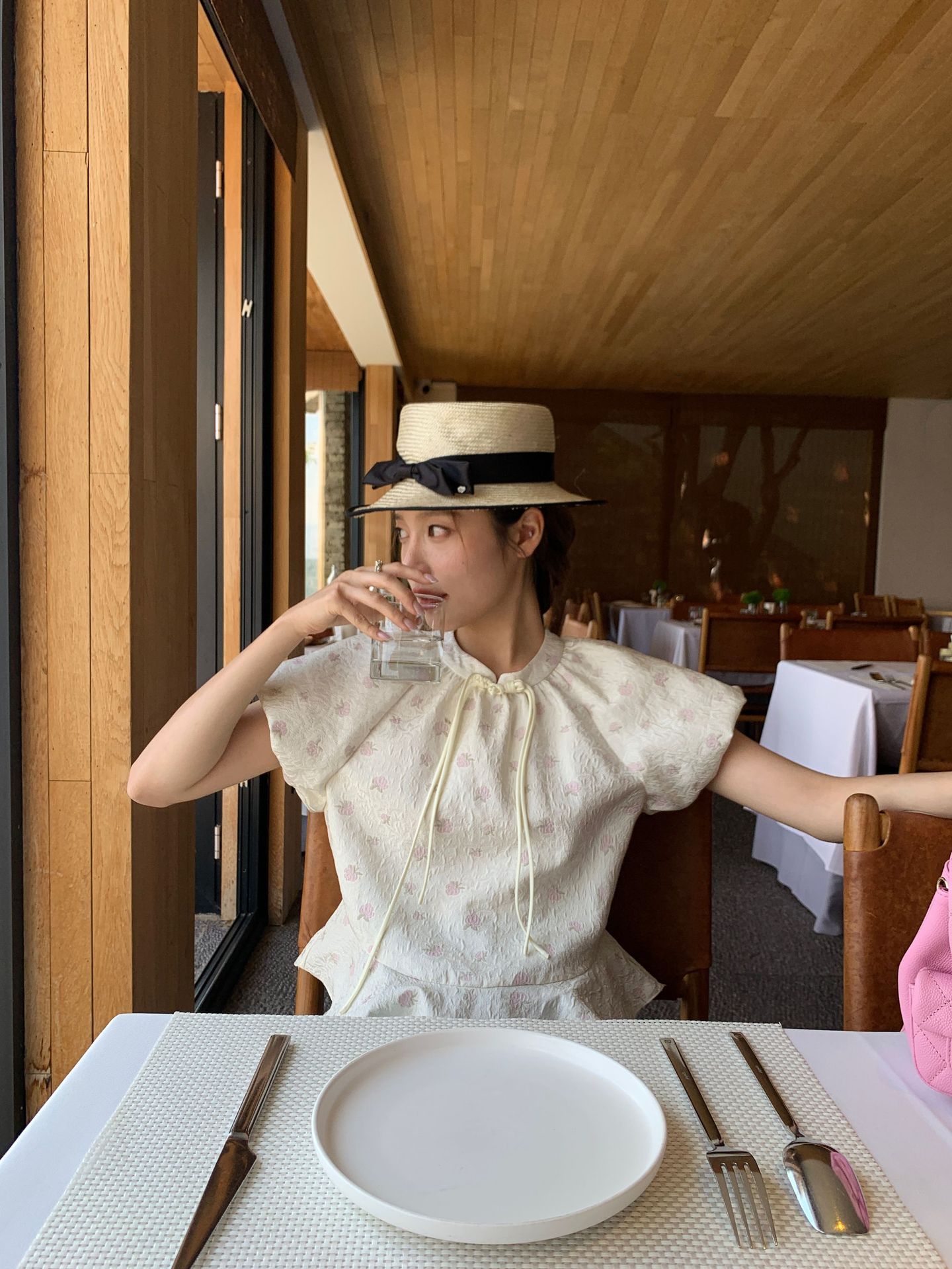 诠释美 NEW OPEN韩版小立领上衣女夏减龄印花设计感小众82567