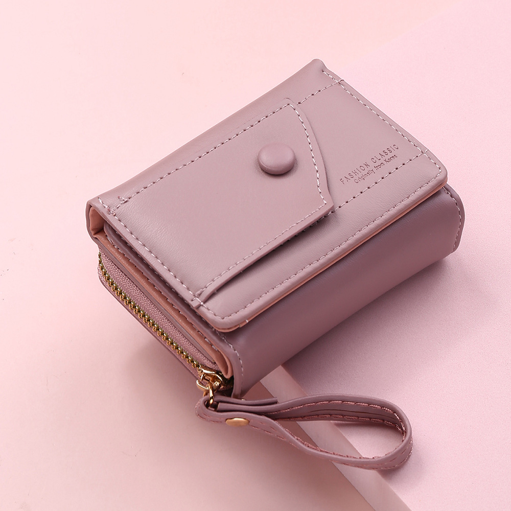 女钱包新款短款女士拉链钱包三折零钱包女学生pu钱夹手包