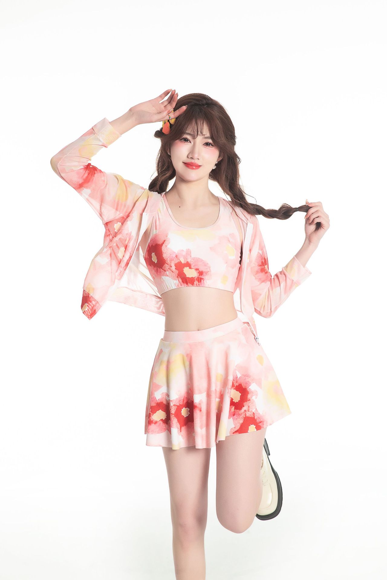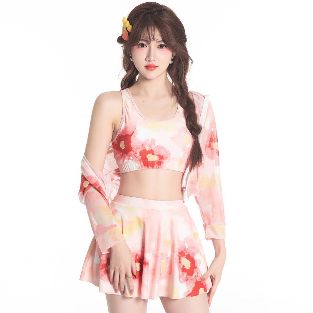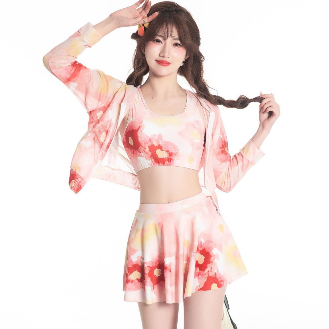 泳衣女显瘦遮肚分体三件套长袖罩衫运动保守女孩新款温泉泳装
