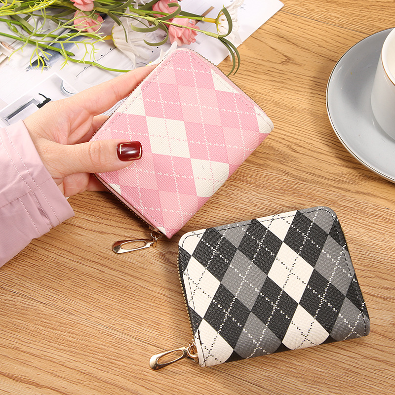 格纹拼色风琴卡包女韩版撞色钱包多卡位证件包卡片卡套学生零钱包