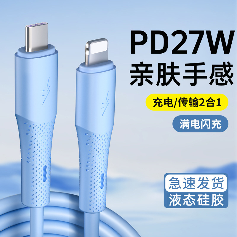 适用苹果快充数据线PD27W快充线真液态硅胶iphone14 13 12充电线x