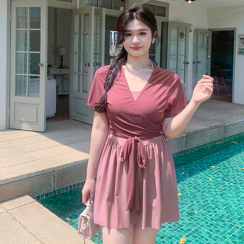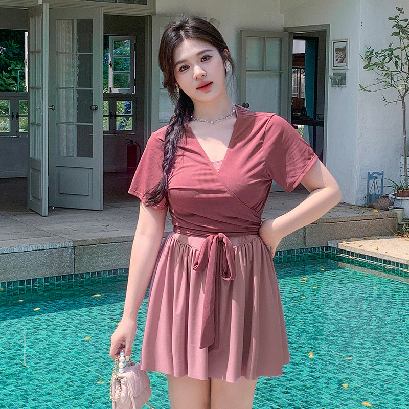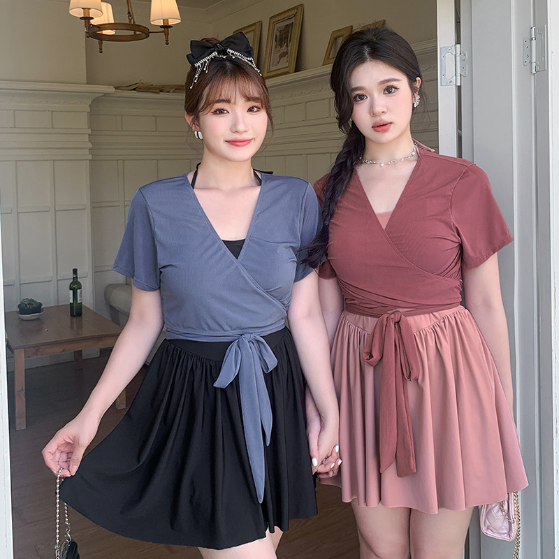 泳衣微胖女孩夏大码连体小胸聚拢胖妹妹裙式连体泳衣修身遮肉泳衣