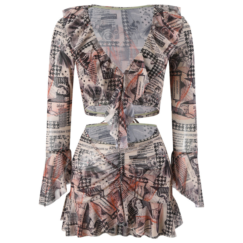 复古简约轻奢款泳衣辣妹四件套保守印花罩衫裙款分体比基尼泳衣女