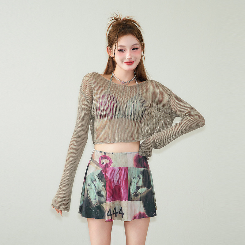 轻奢简约四件套泳衣半透镂空罩衫性感辣妹比基尼四件套分体泳衣女