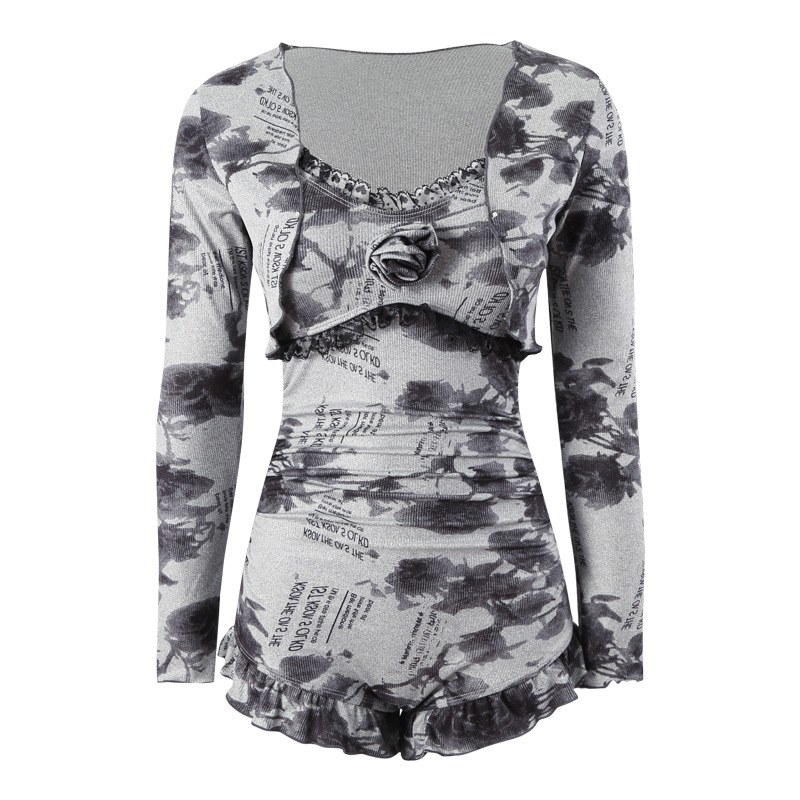 新款印花两件套泳衣长袖保守遮肚显瘦连体纯欲高级感仙女范泳衣女