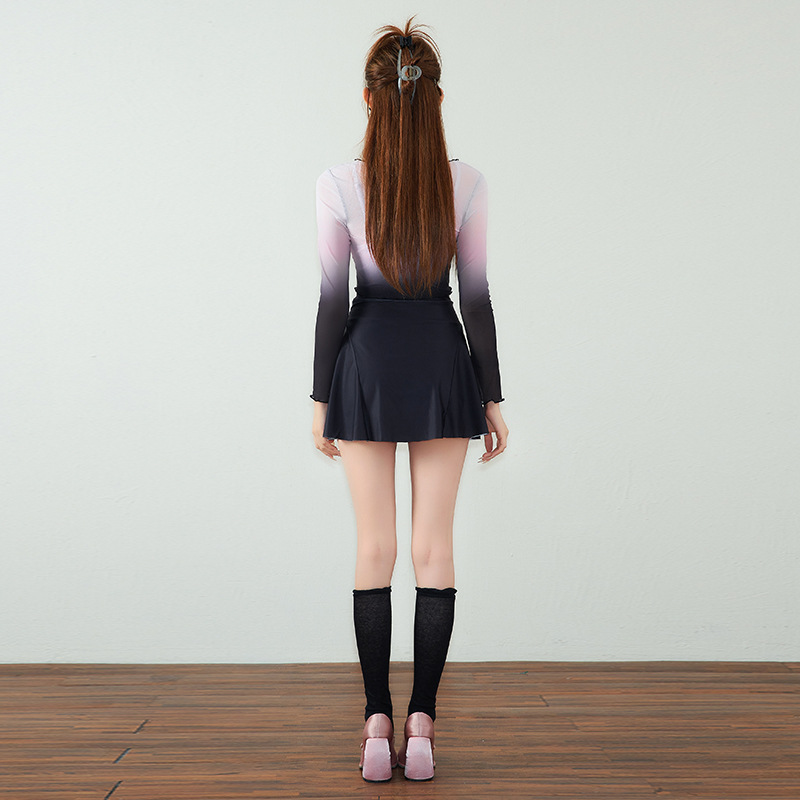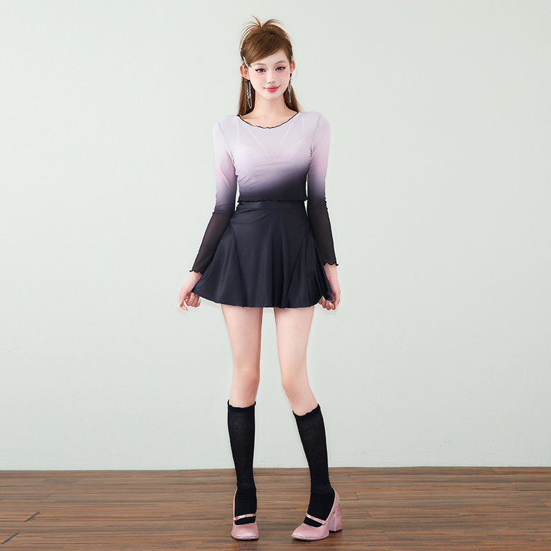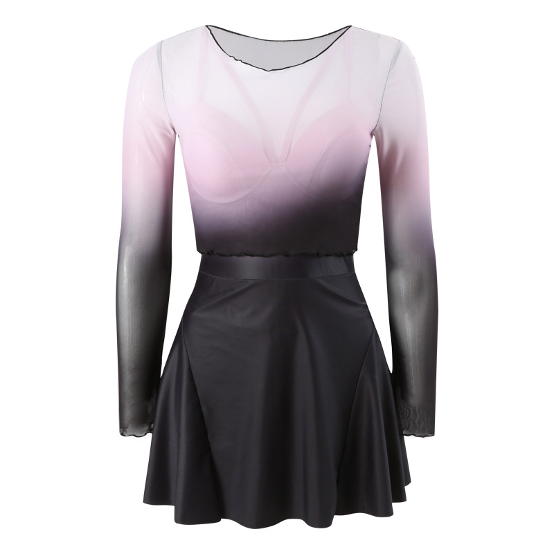 韩版新款女士连体裙式泳衣修身显瘦遮肚保守小胸聚拢长袖防晒泳衣