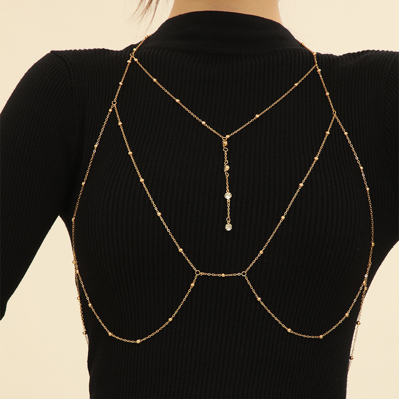 性感夸张时尚胸链沙滩休闲比基尼金属链闪钻吊坠流苏身体链女