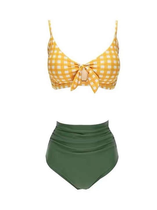 韩国新款高腰性感小胸聚拢抹胸泳衣女显瘦度假分体比基尼泡温泉