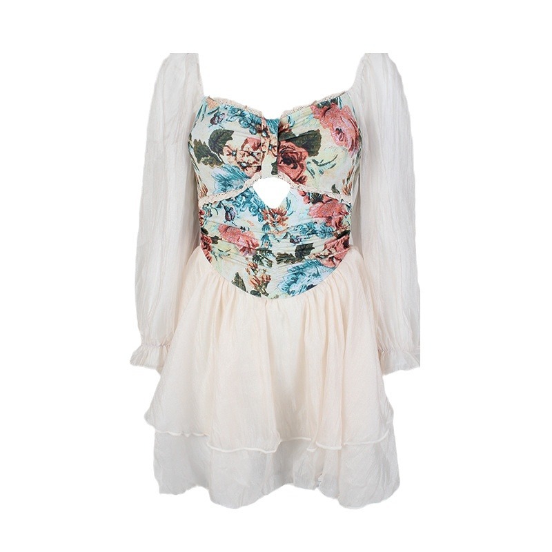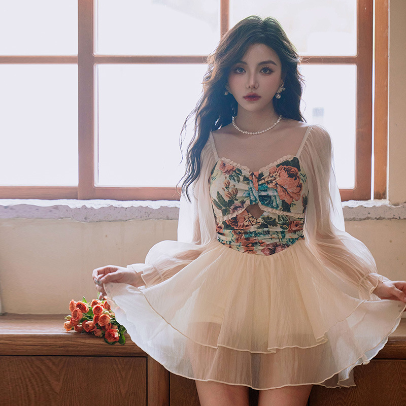 新款欧美印花泳衣长袖防晒泳衣女修身显瘦泳衣女高级感连体泳衣女