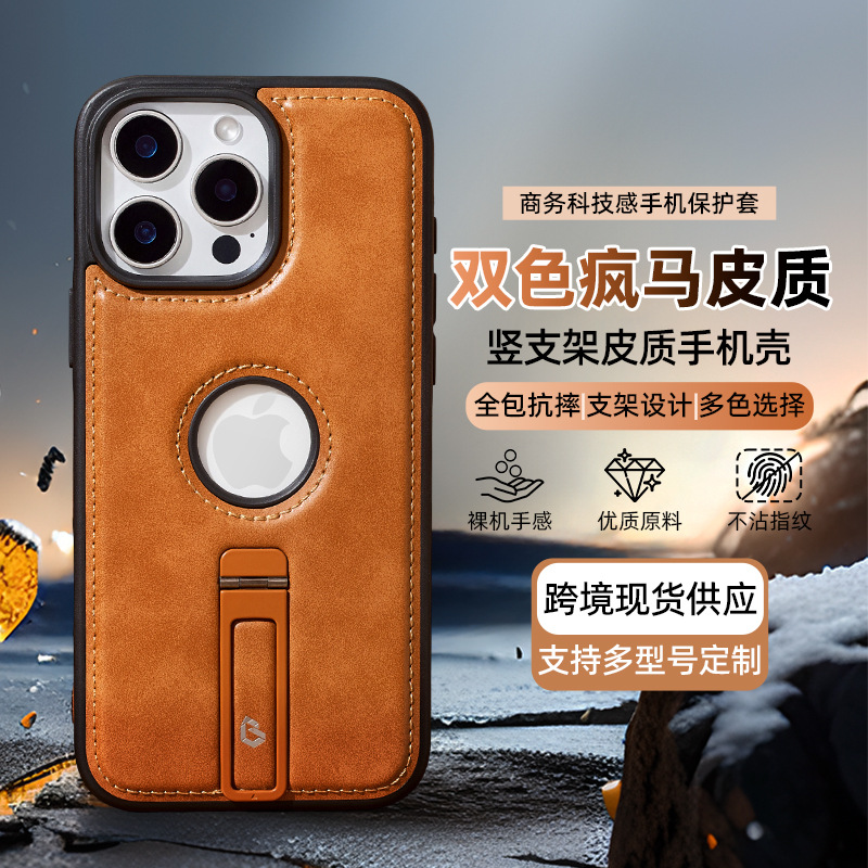 新款适用苹果16ProMax支架手机壳商务仿真皮套防磨防摔保护套现货