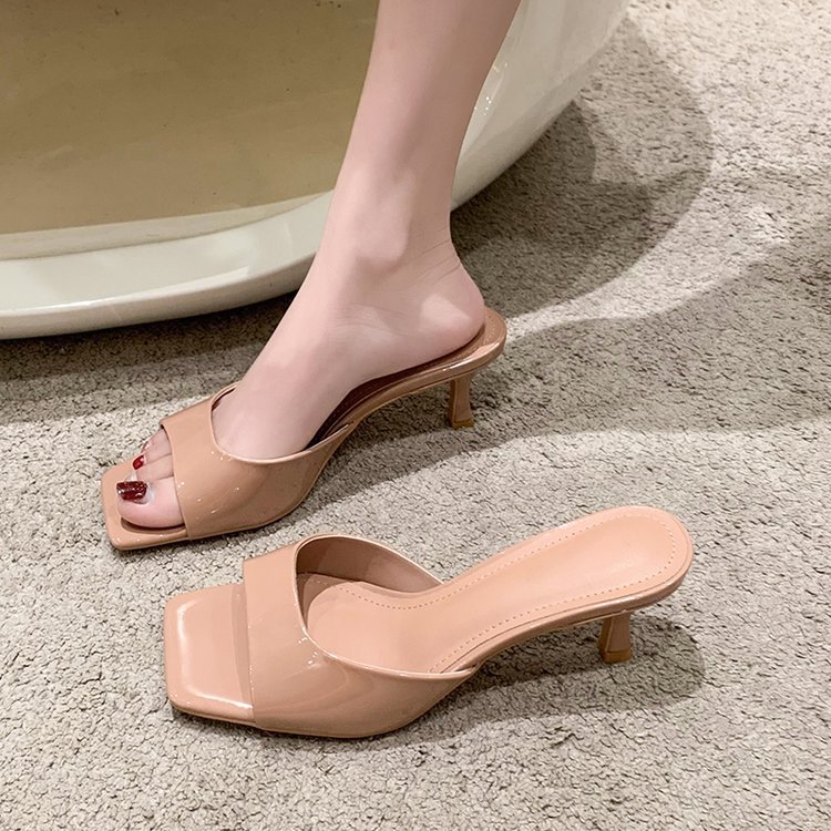 夏季新款韩版细跟拖鞋女外穿方头露趾一字拖时尚高跟凉拖
