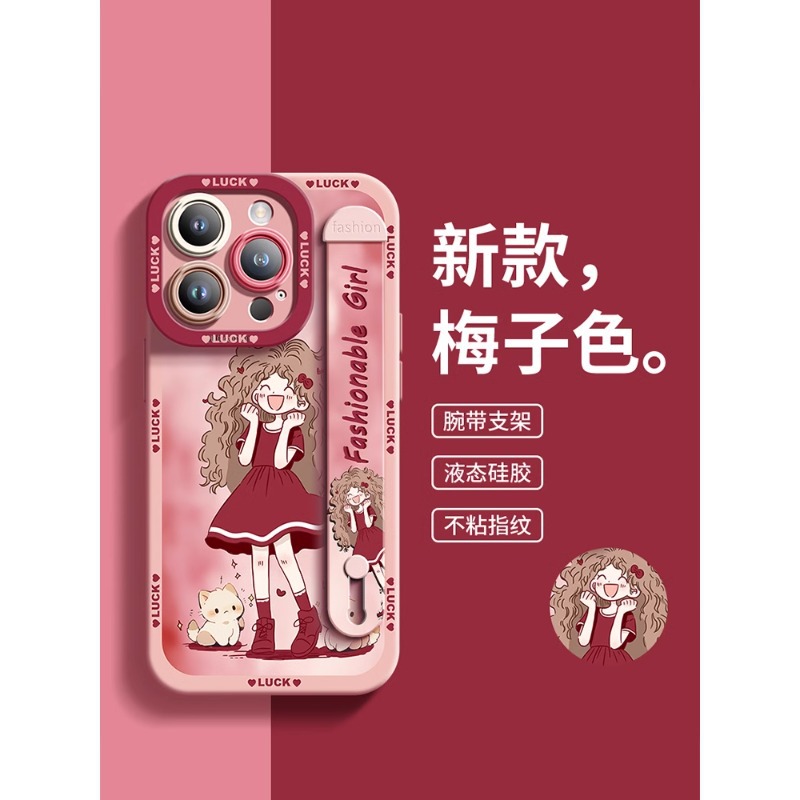 适用于苹果13Pro手机壳女孩与宠物硅胶腕带情侣全包现代14保护壳