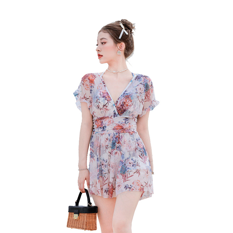 新款游泳衣女连体平角保守显瘦遮肚大码裙式温泉复古学生泳装