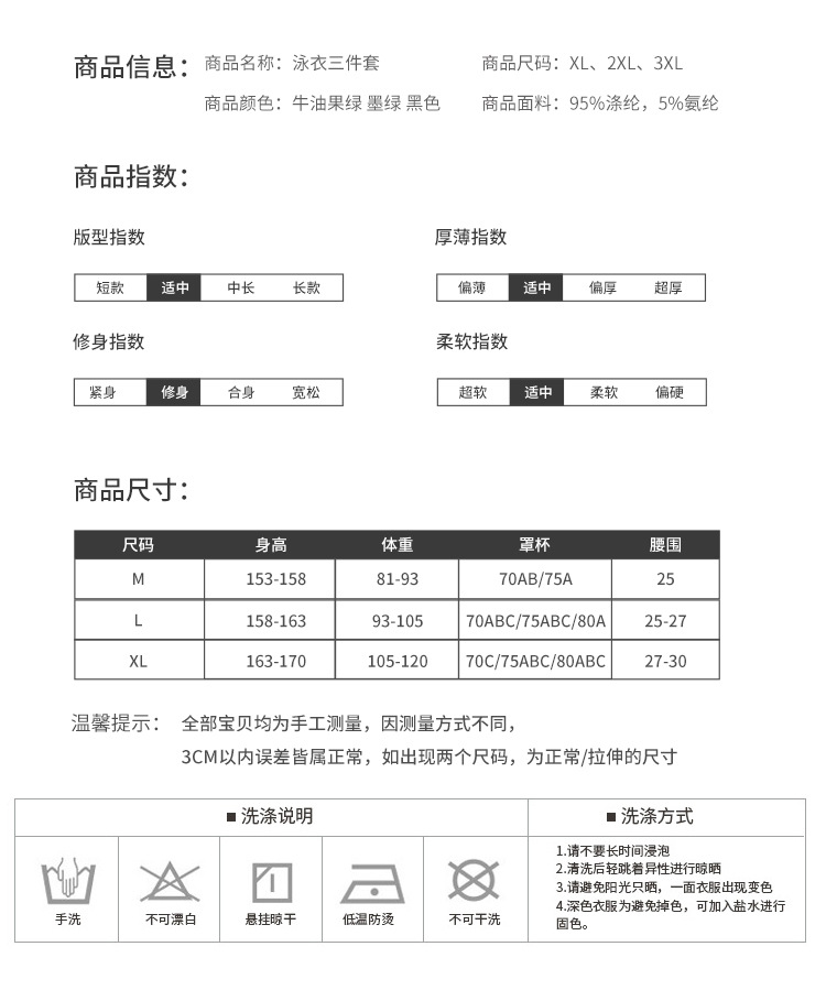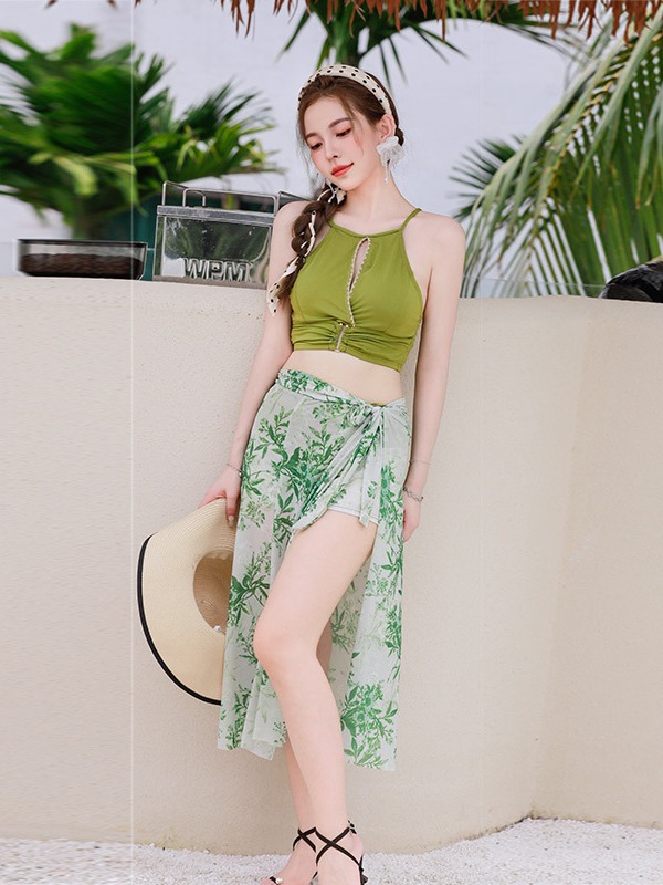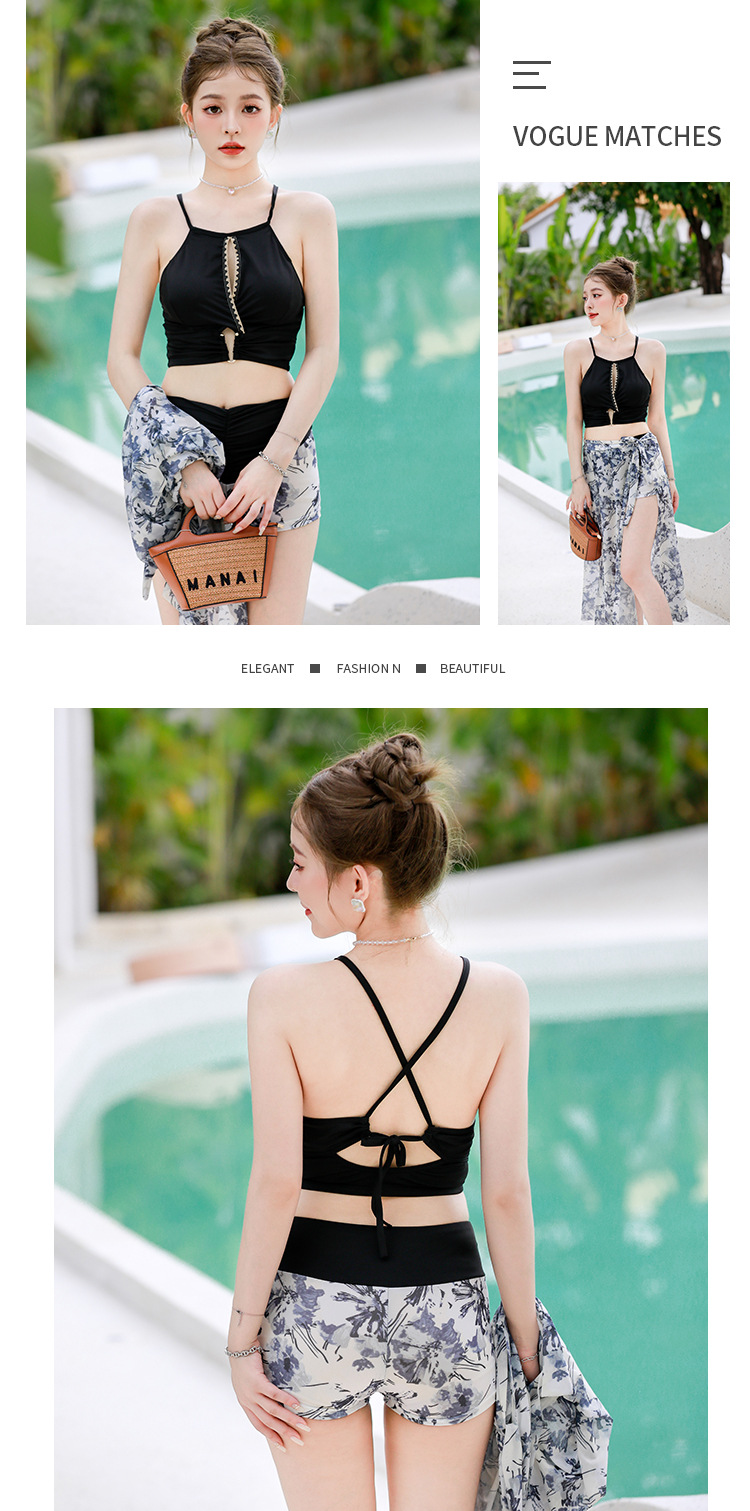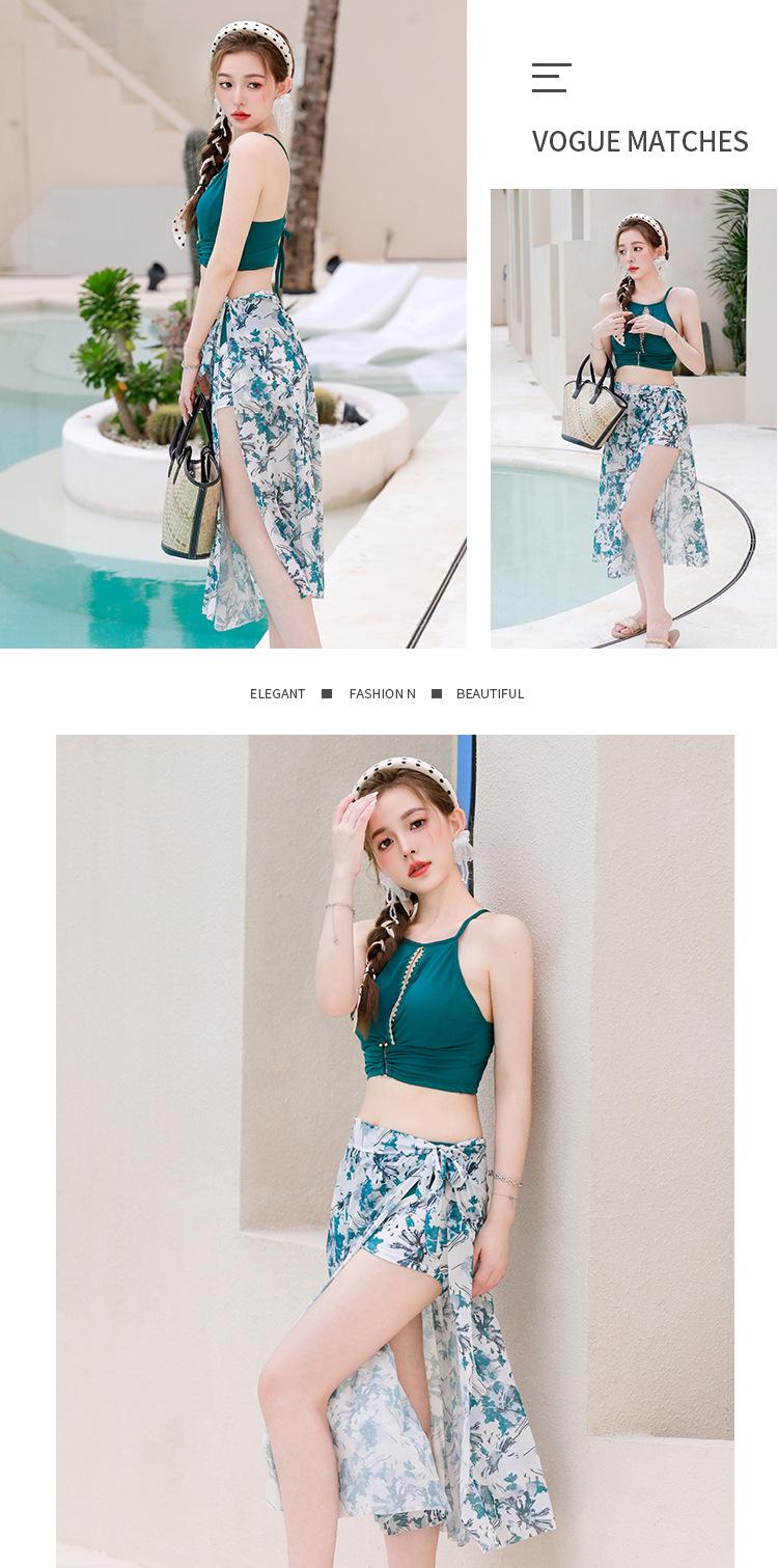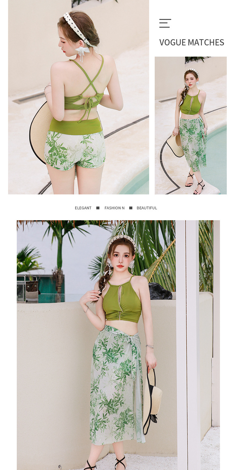 比基尼泳衣女新款海边度假三件套保守高级感分体泳装泡温泉