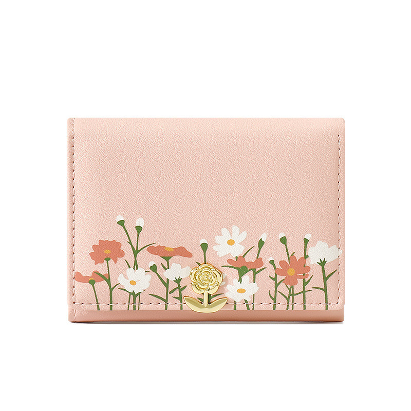 新款小清新花朵印花小三折薄款小巧精致短款钱包钱夹女