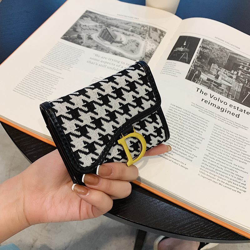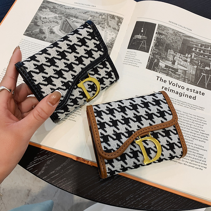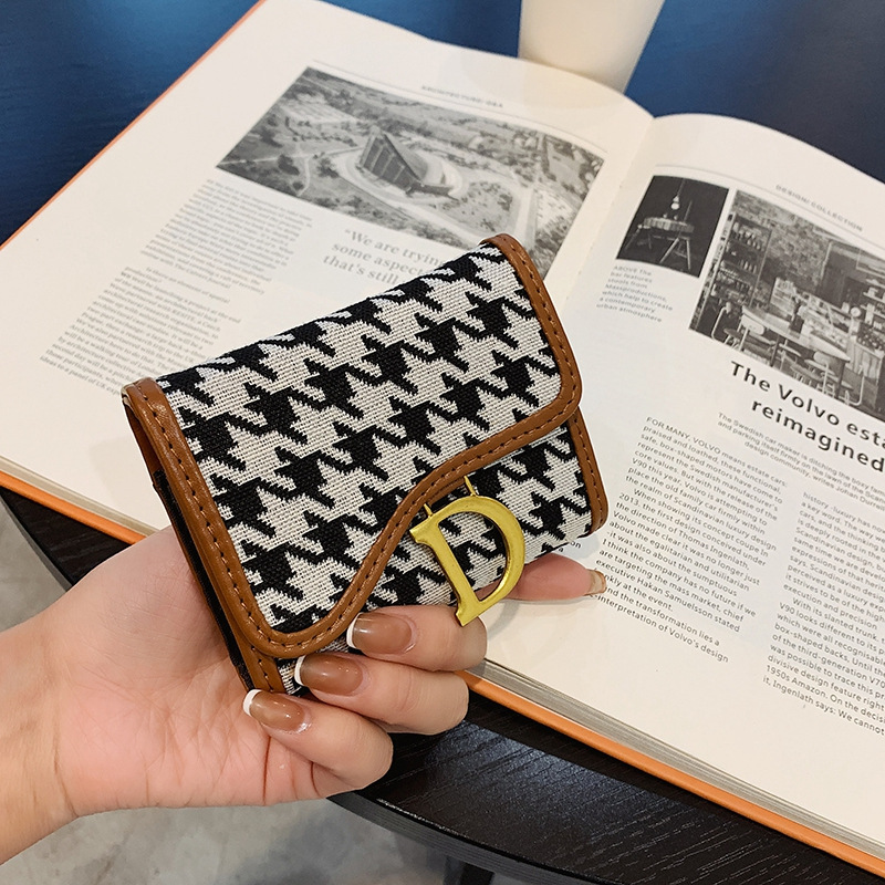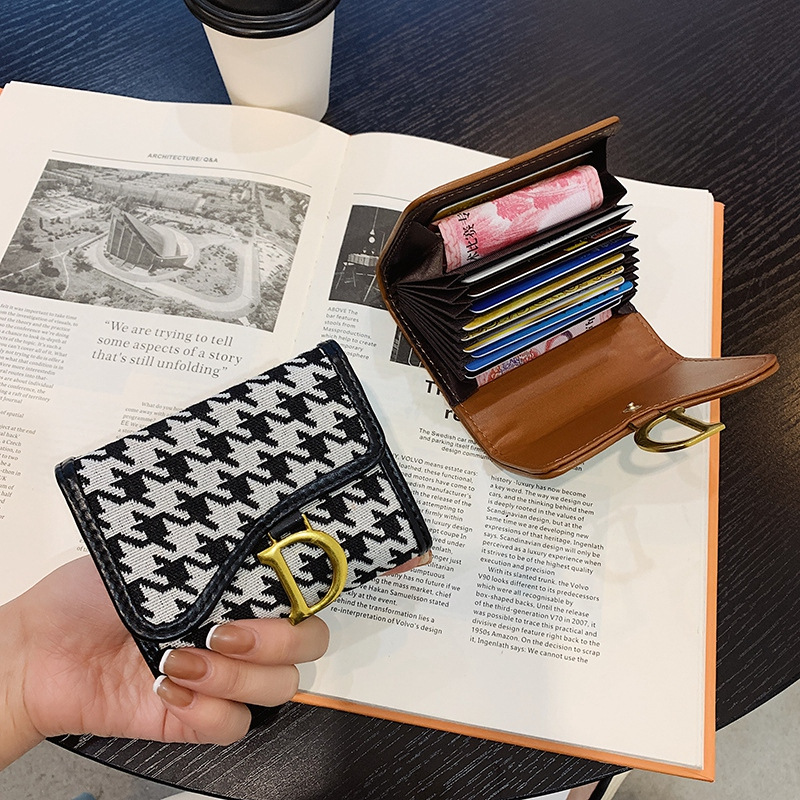 春夏新款韩版千鸟格风琴卡包钱包小包包女士钱夹明片夹配色包