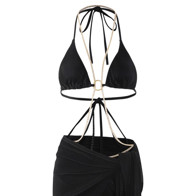 泳衣女纯欲链条性感欧美分体三角比基尼三件套披纱度假温泉游泳装