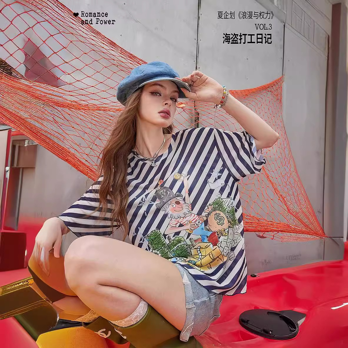 满印透气慵懒短袖t恤女夏季新款休闲百搭显瘦上衣