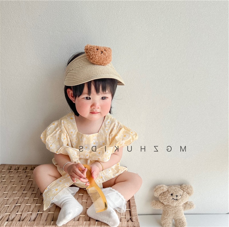 婴儿草帽夏季空顶凉帽可爱超萌小熊太阳帽可折叠儿童出游帽潮