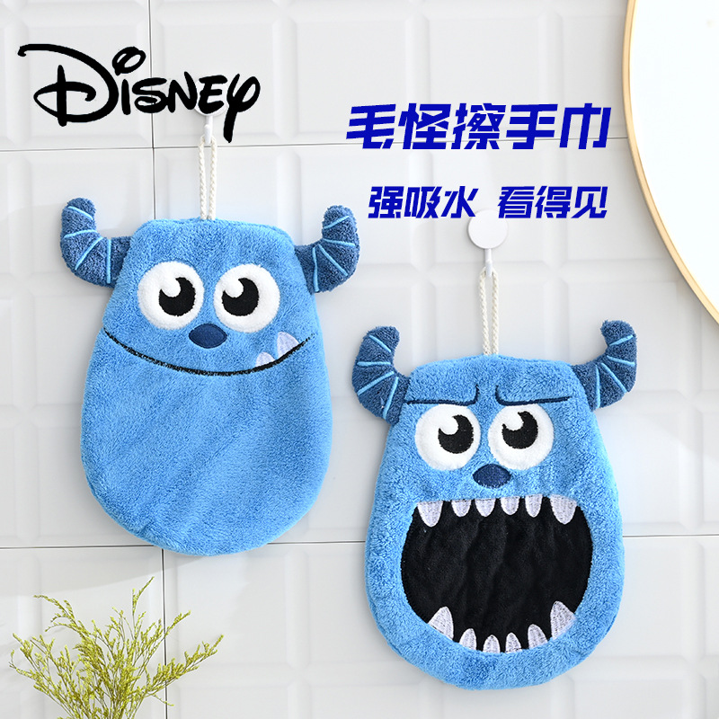 怪兽擦手巾 可挂儿童可爱卡通加厚珊瑚绒吸水擦手方巾