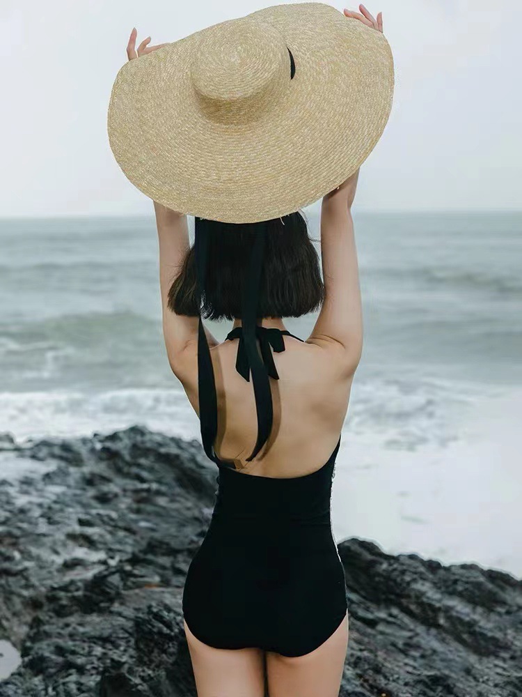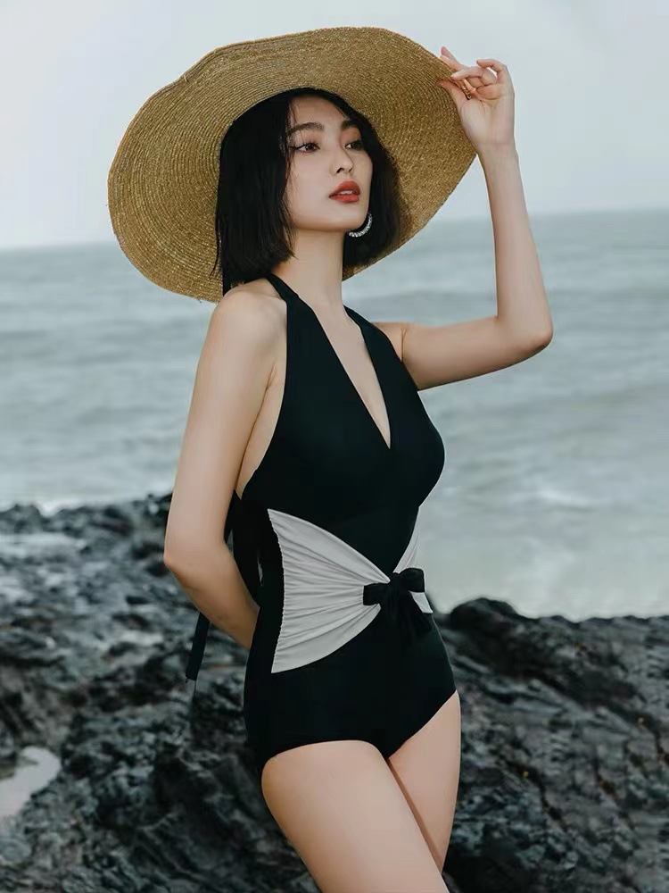 泳衣女韩国性感网红ins显瘦遮肚挂脖小胸聚拢温泉三角 连体游泳装