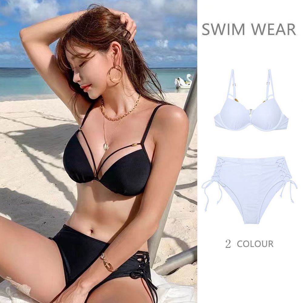 三亚度假比基尼泰式辣妹性感三点式小胸聚拢显臀黑色分体泳衣泳装