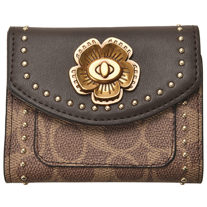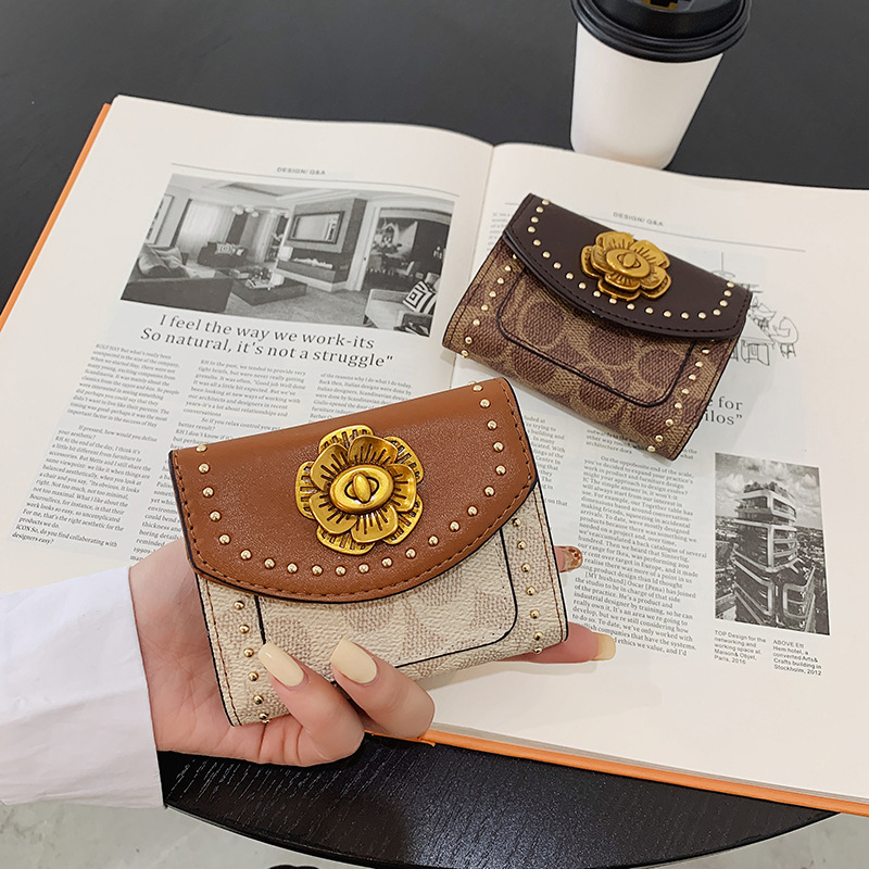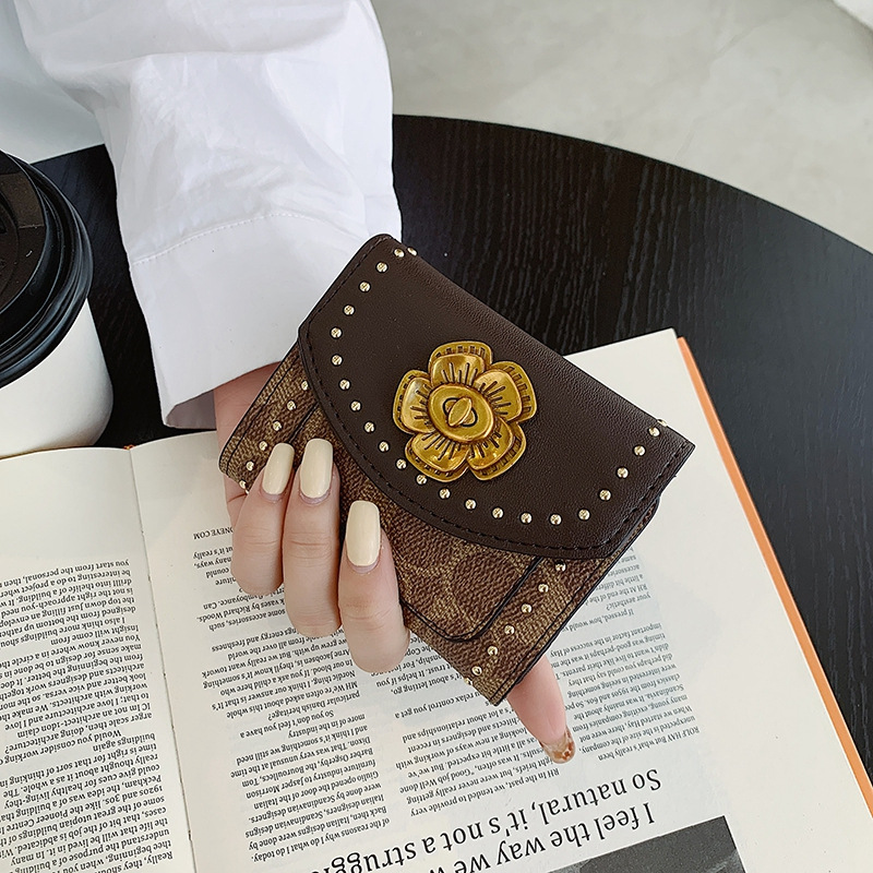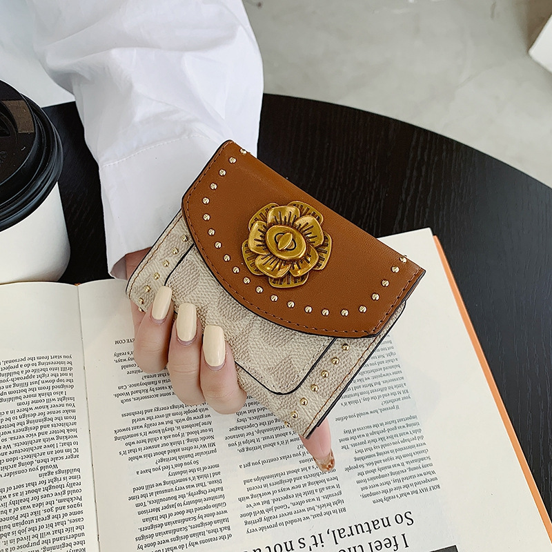 山茶花女士卡包新款爆款铆钉短款零钱包多卡位名片证件包
