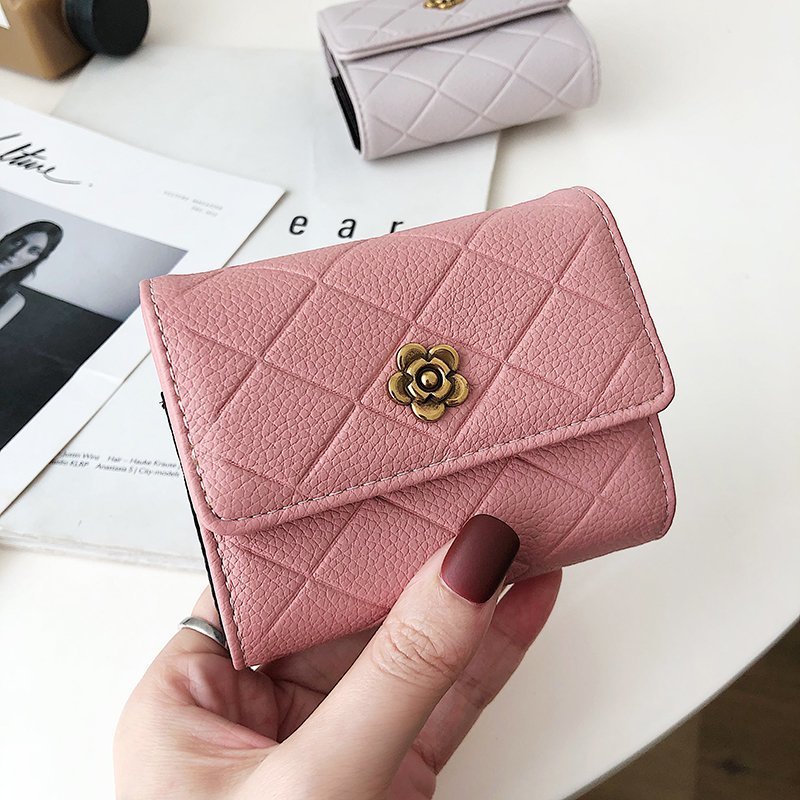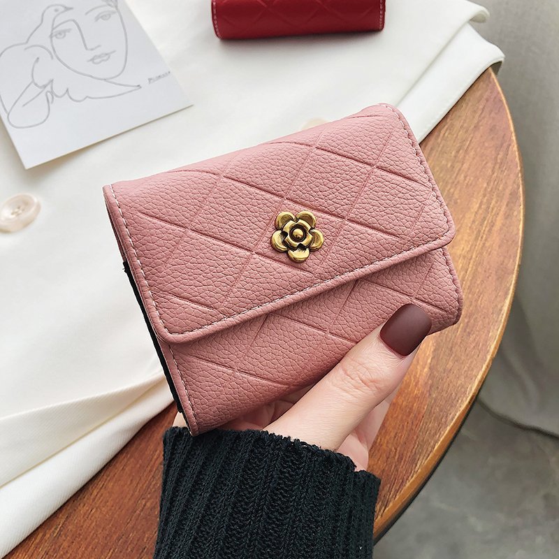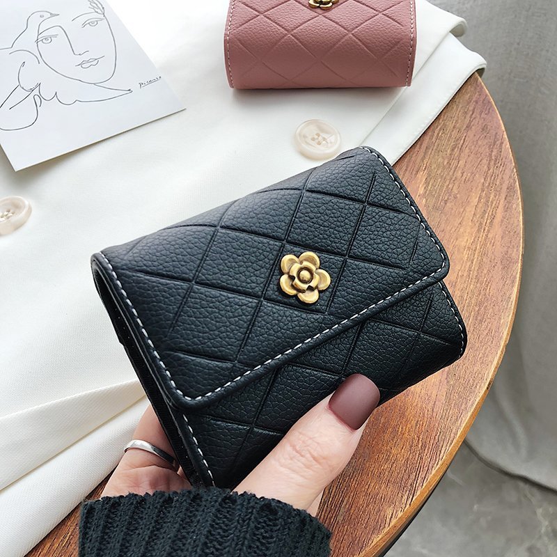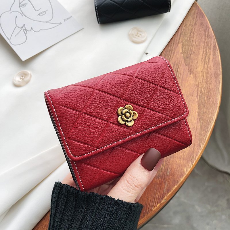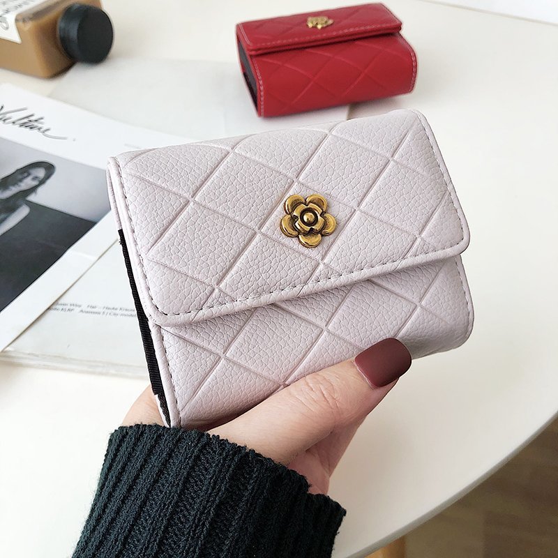 山茶花卡包女小巧新款名片证件包多卡位菱格学生卡夹