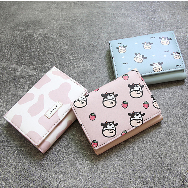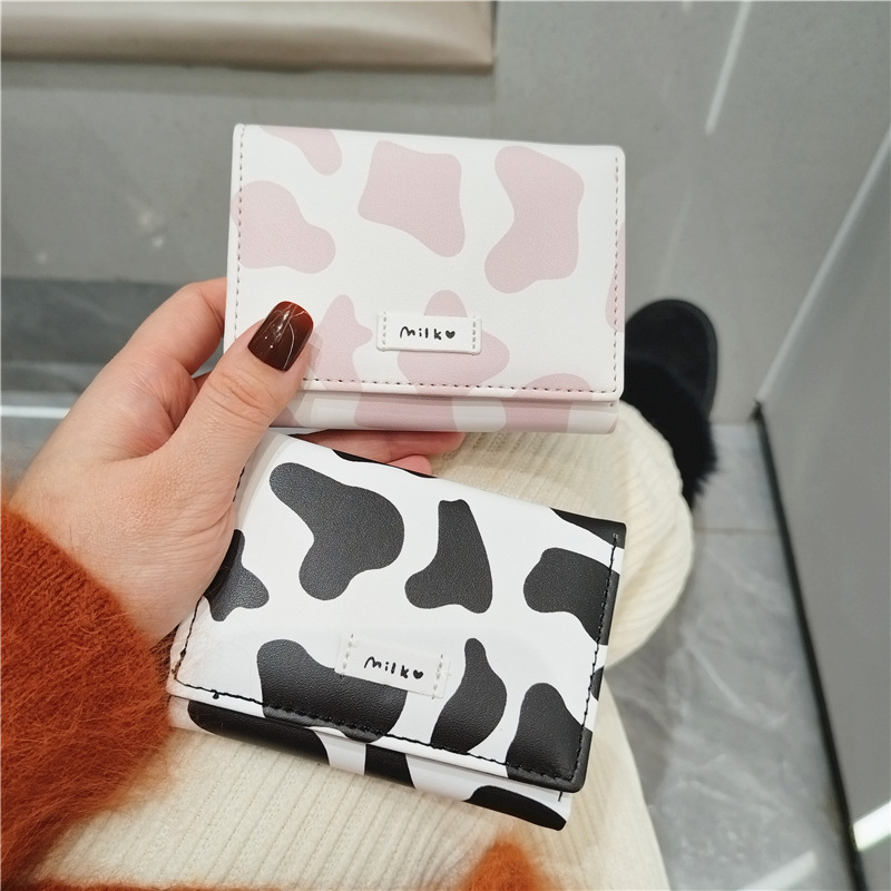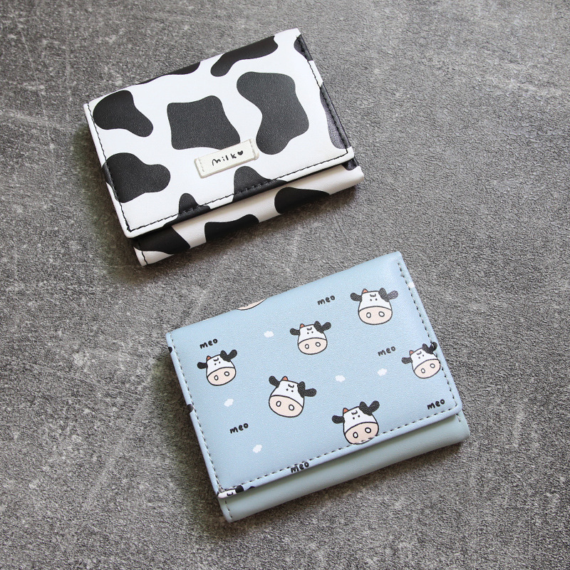 韩版可爱奶牛三折迷你潮个性ins学生女短款小钱包钱夹