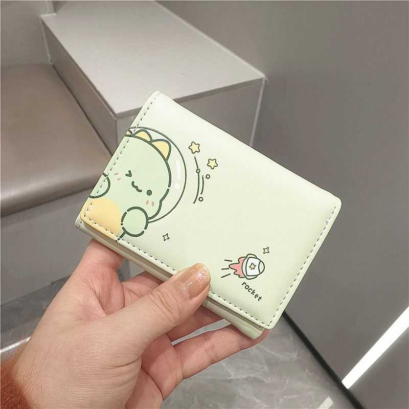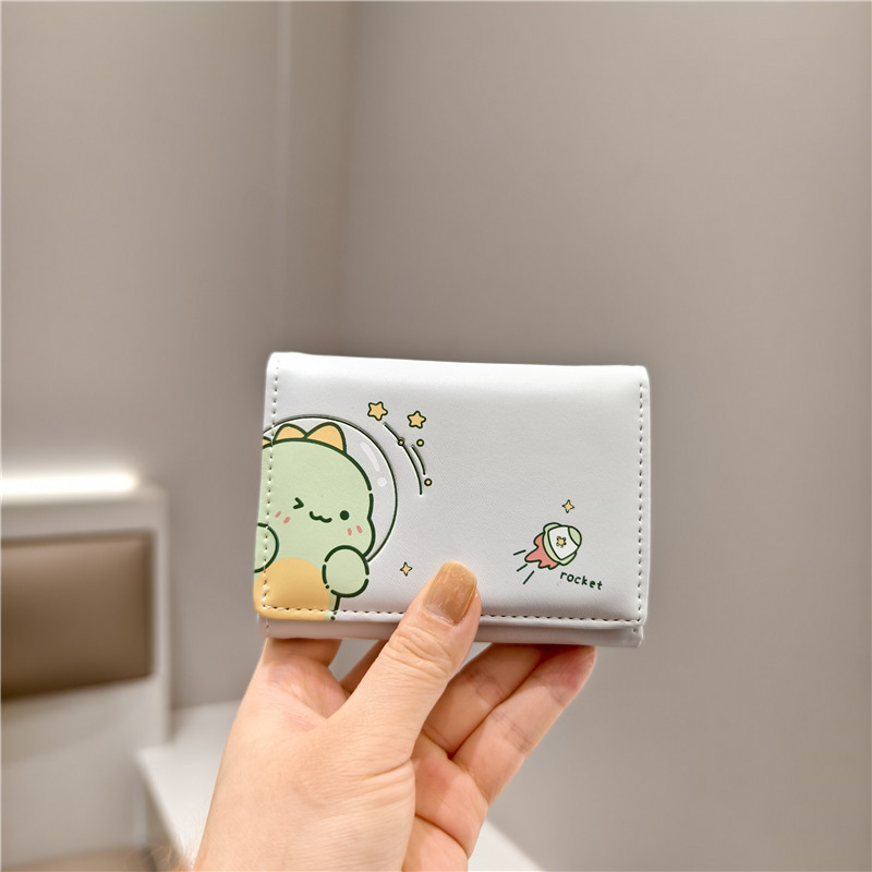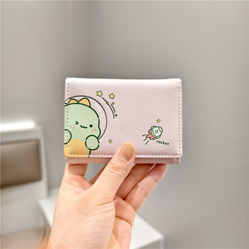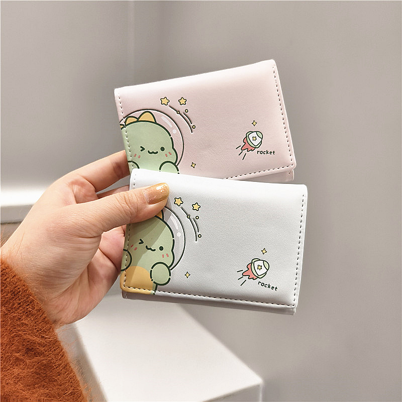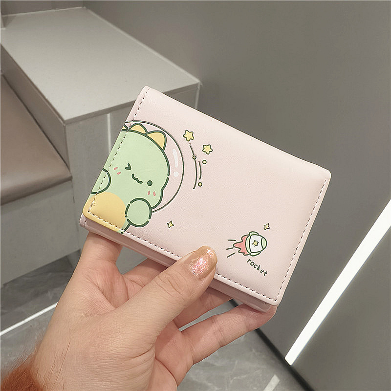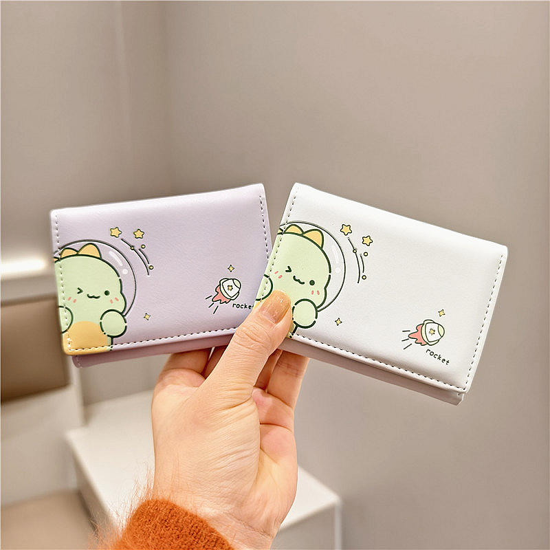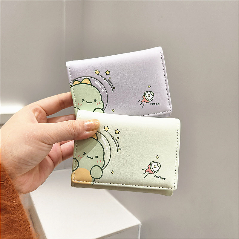 韩版新款卡通可爱恐龙印花小三折迷你薄款小巧短款钱包钱夹