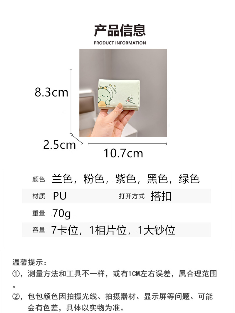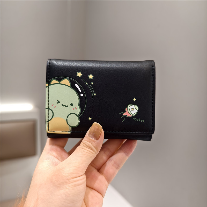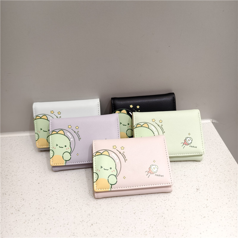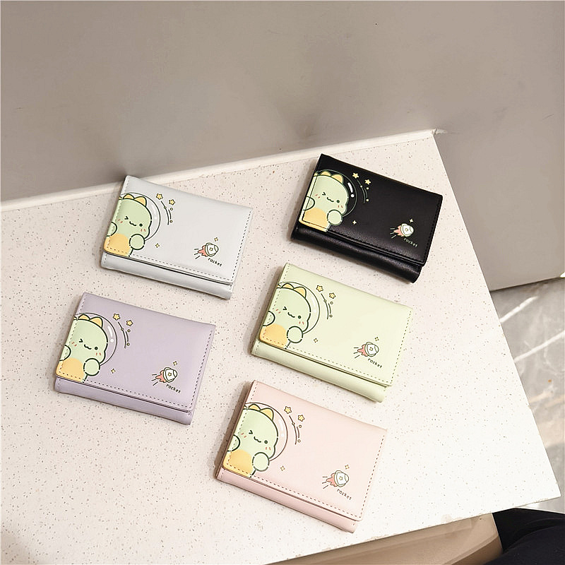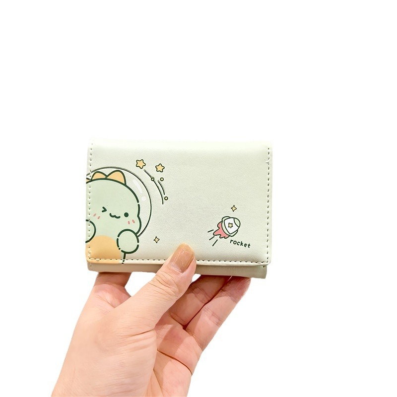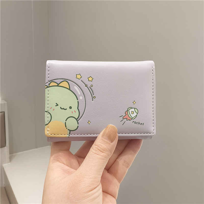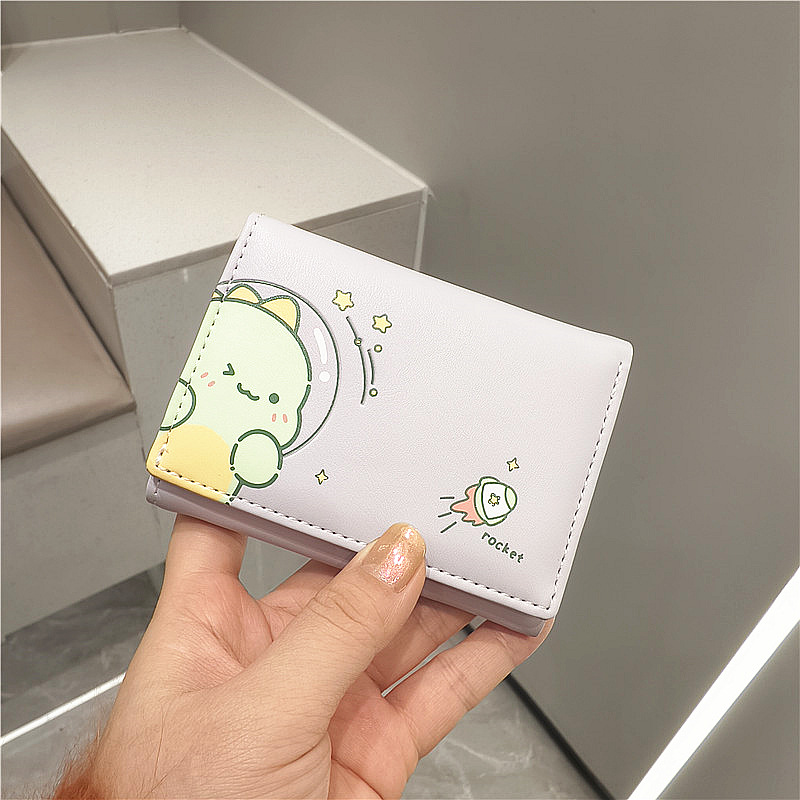 韩版新款卡通可爱恐龙印花小三折迷你薄款小巧短款钱包钱夹
