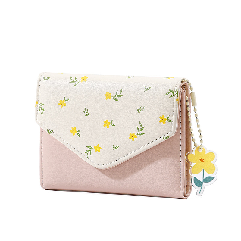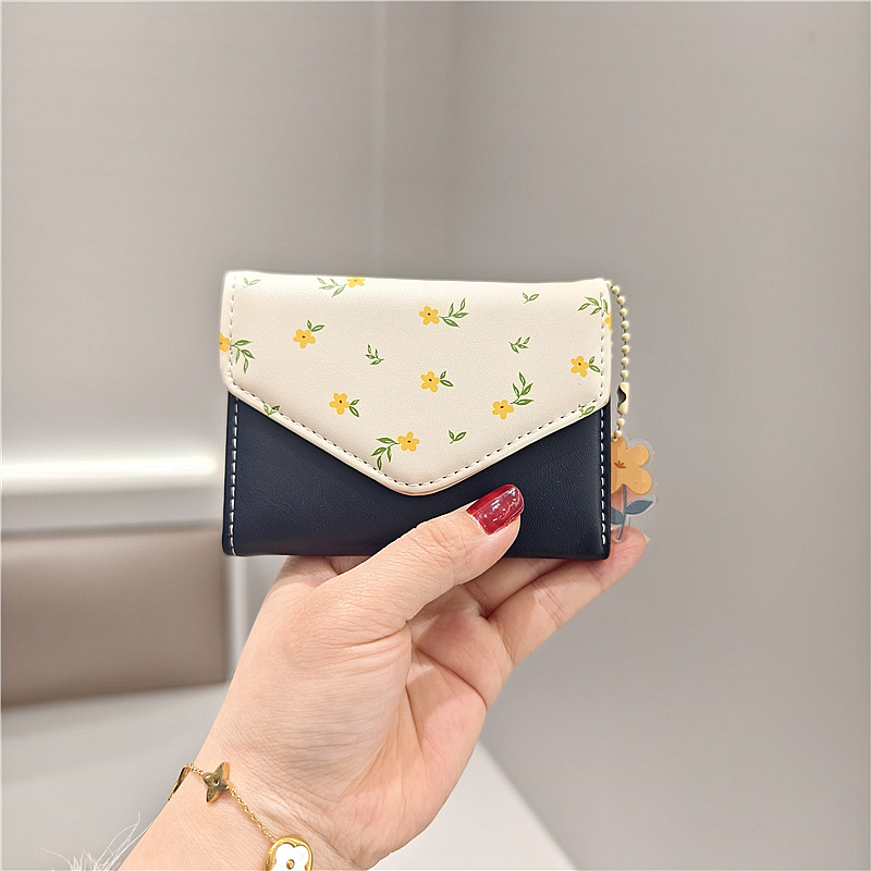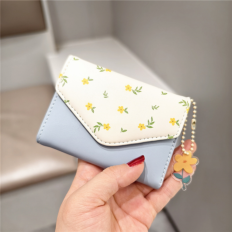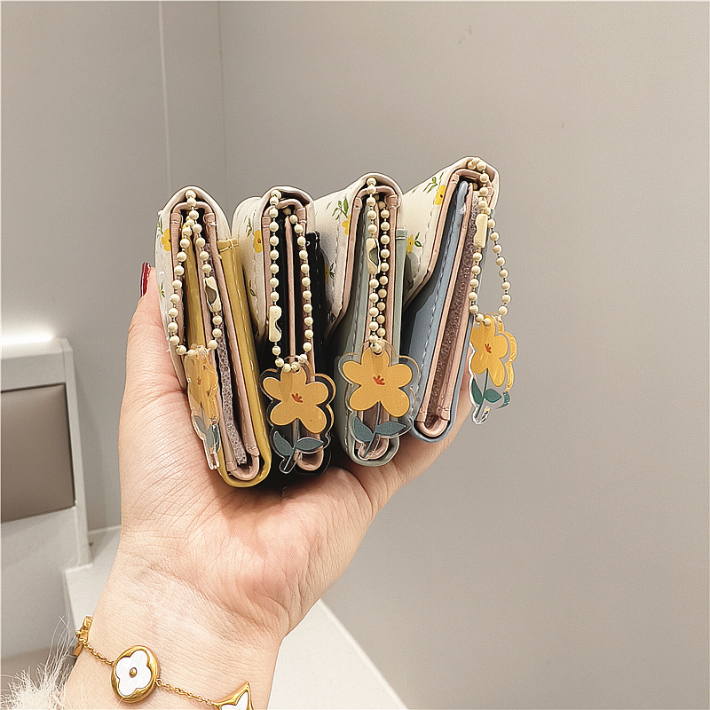 韩版新款小清新碎花印花花朵吊坠小三折薄款小巧短款钱包女