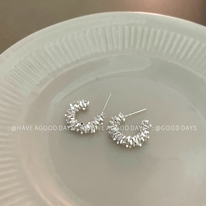 冷淡风碎银环形耳环气质小众设计感耳饰高级轻奢风925银针简约女~