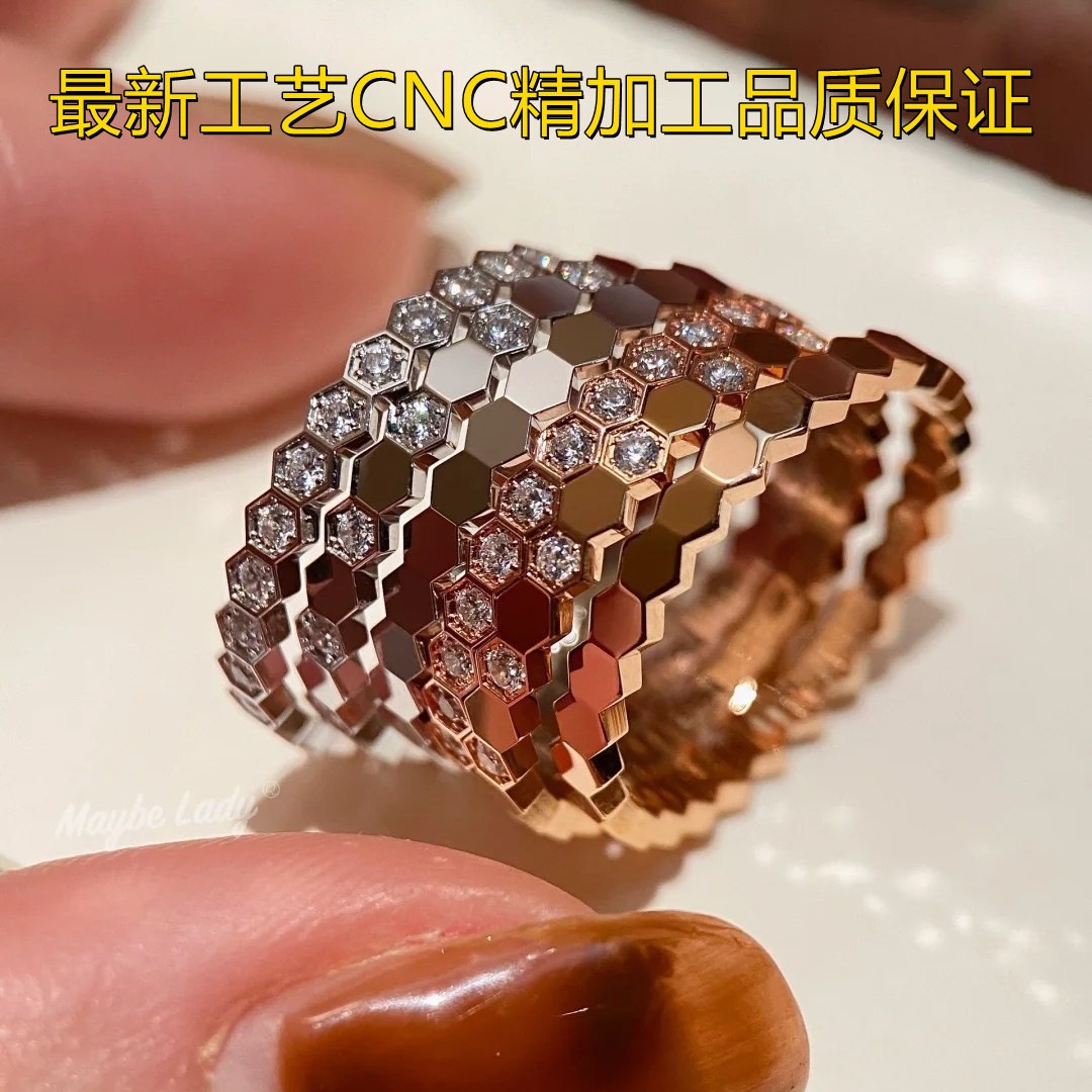 跨境蜂巢戒指高版CNC精工镀18k玫瑰金小众男女情侣蜂窝对戒指环95