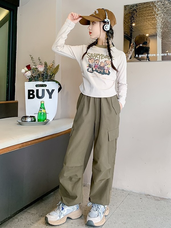 女童秋装新款洋气时髦童装韩版中大童工装裤休闲百搭春秋长裤