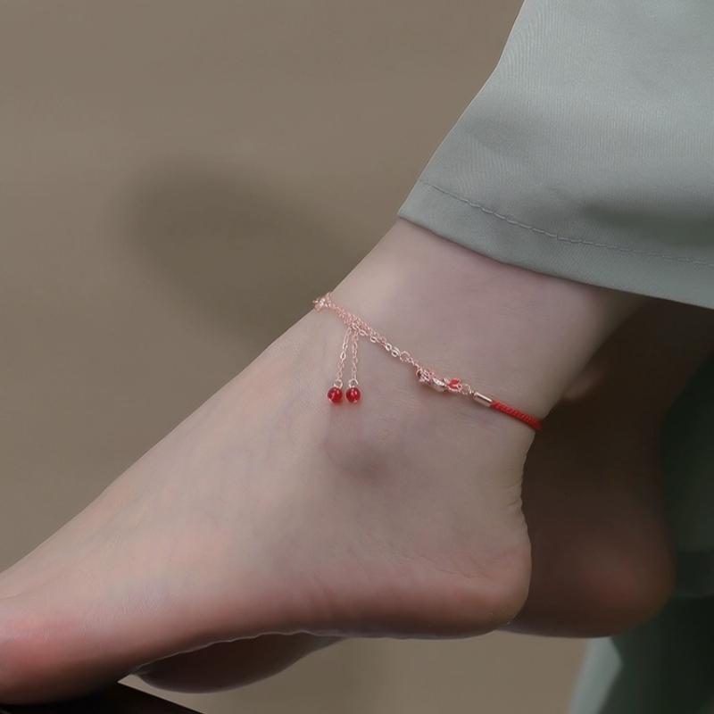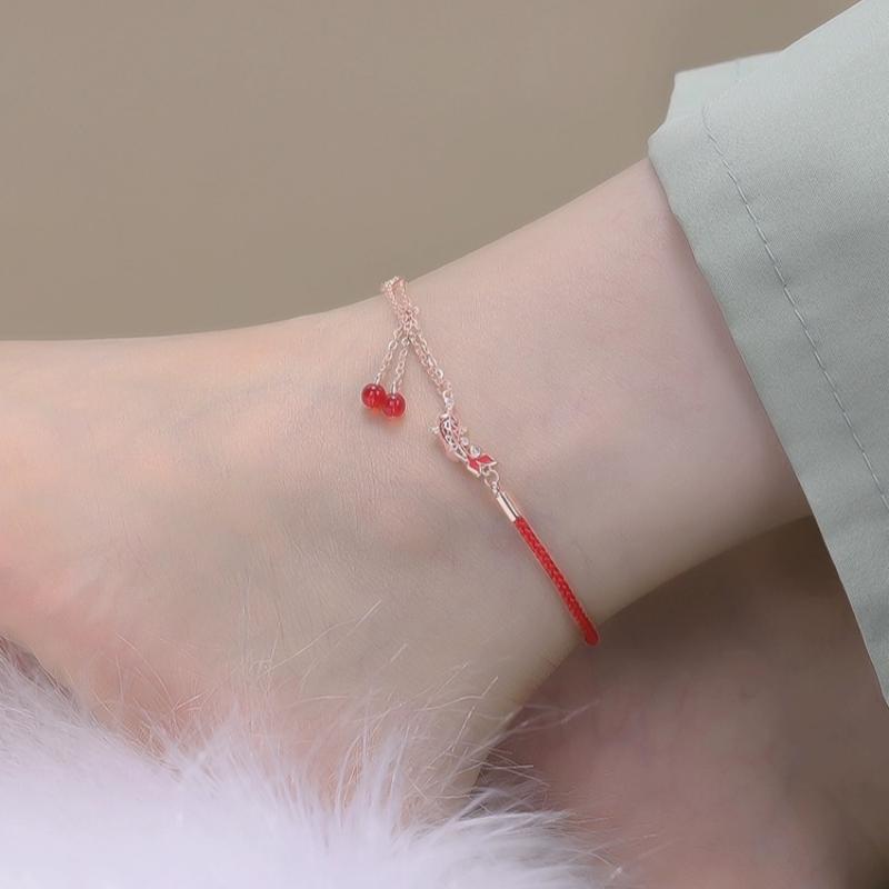 上岸锦鲤红绳脚链女新款潮足链脚环编织绳520情人节礼物