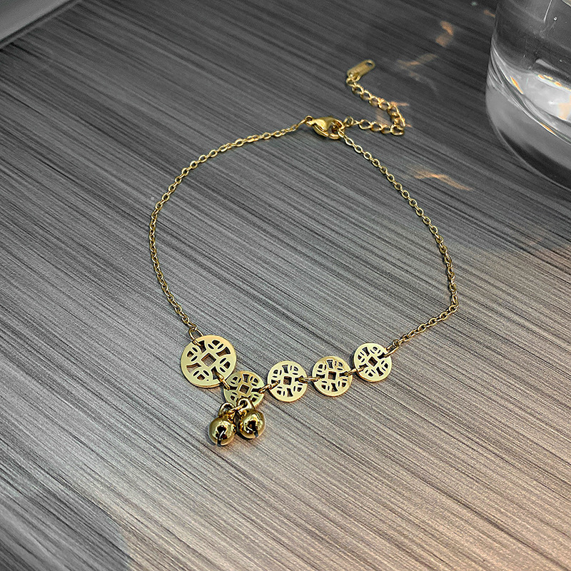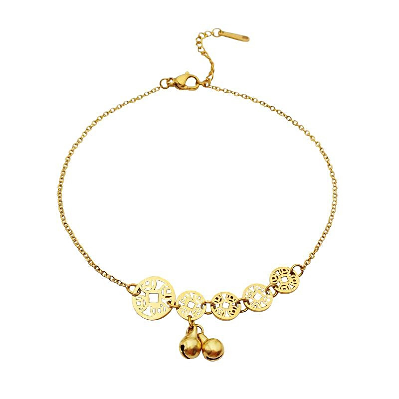 转运铜钱钛钢脚链不掉色性感个性简约时尚网红铃铛脚链子女款潮