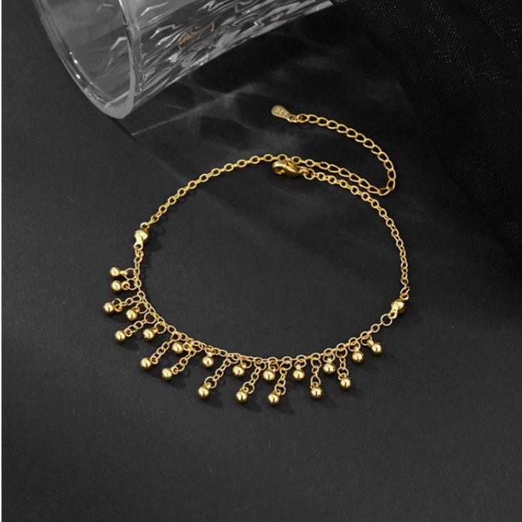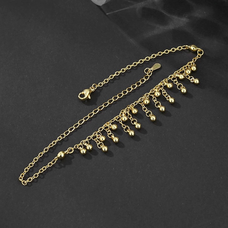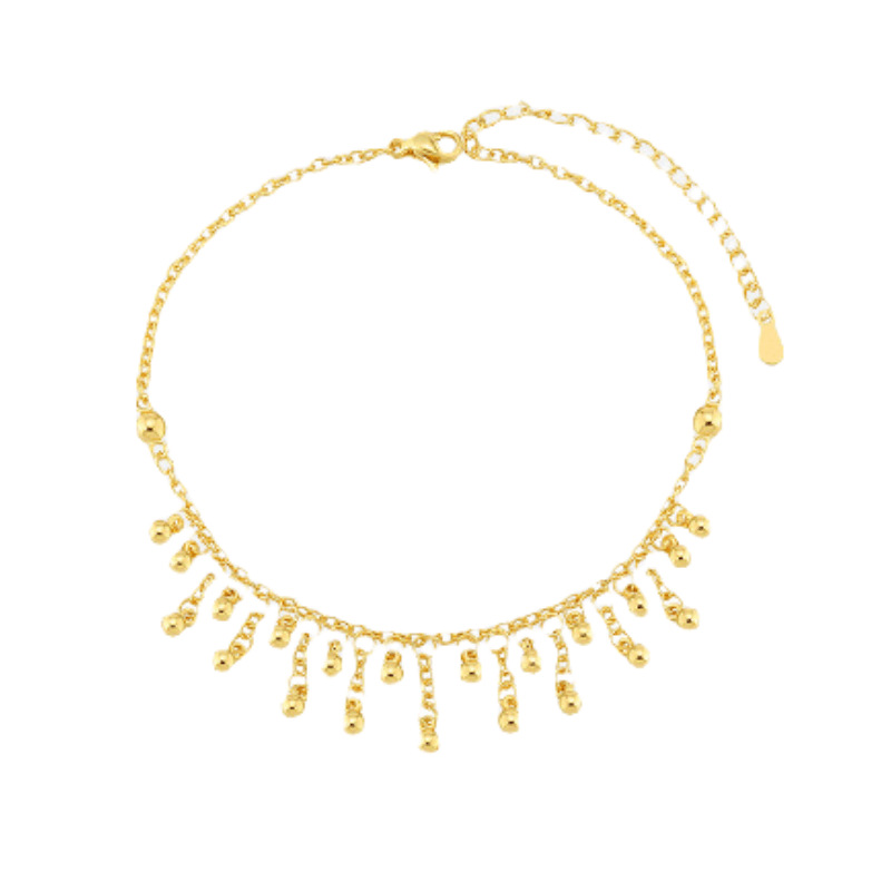 圆珠流苏脚链金色