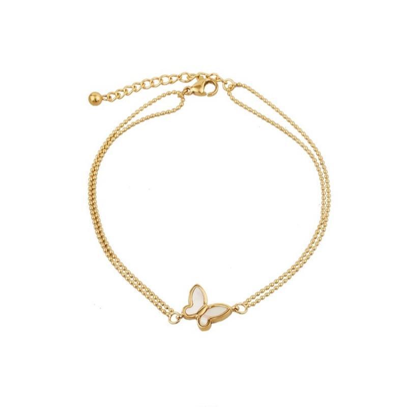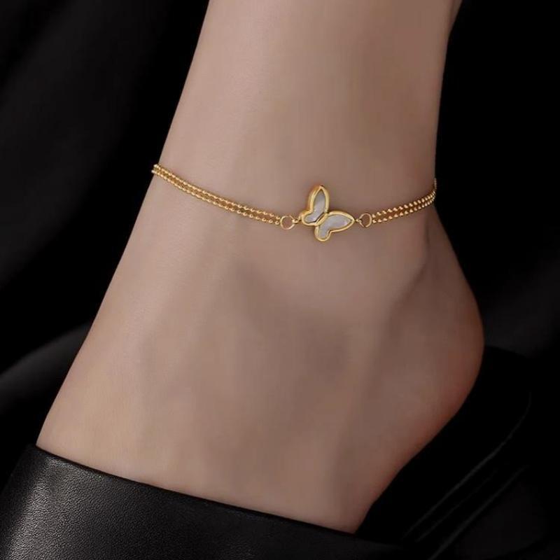 金色蝴蝶吊坠脚链女生潮小众设计感年新款轻奢足链