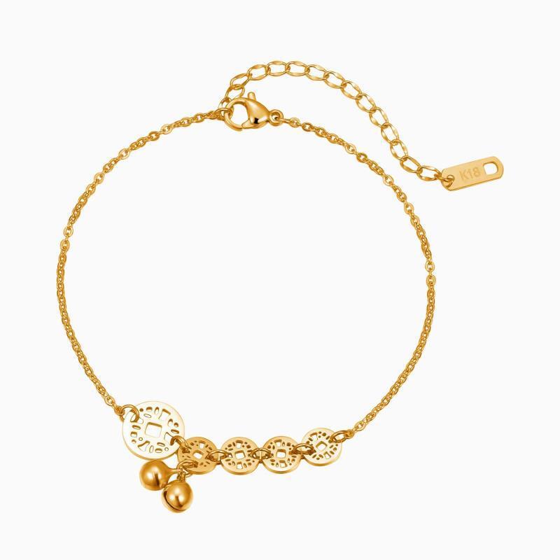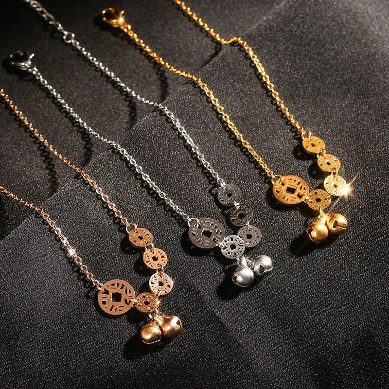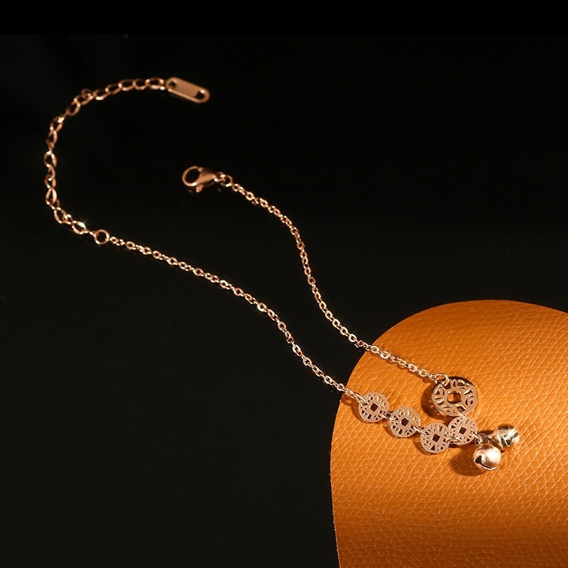 铜钱脚链女新款潮ins时尚18k玫瑰金高级感足链钛钢不掉色