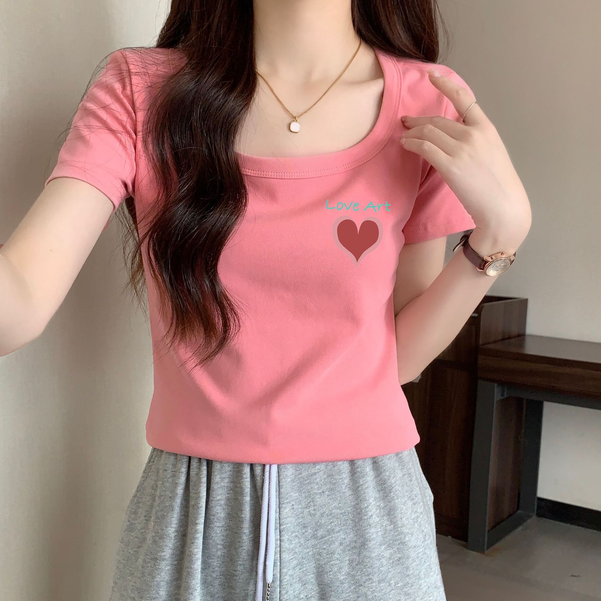 露锁骨别致短袖t恤女新款夏季方领体恤甜辣显瘦上衣