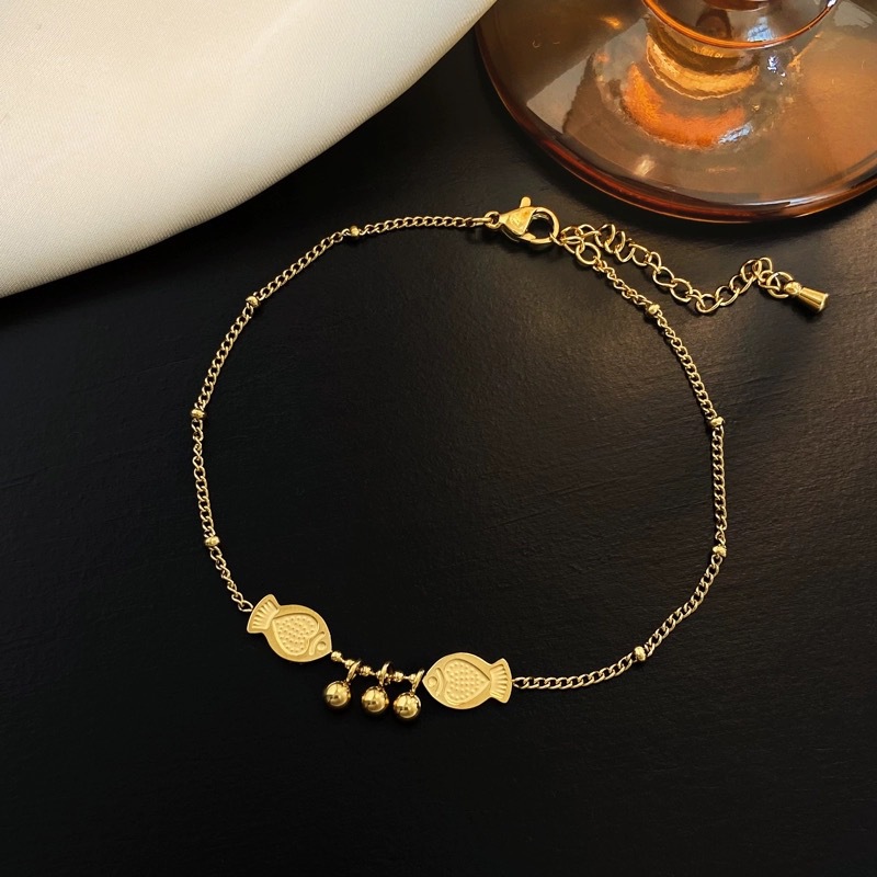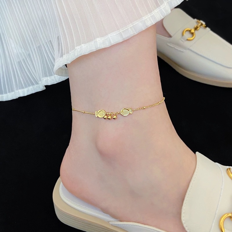 亲嘴鱼钛钢不掉色脚链女新款潮轻奢高级感小众设计足链脚环