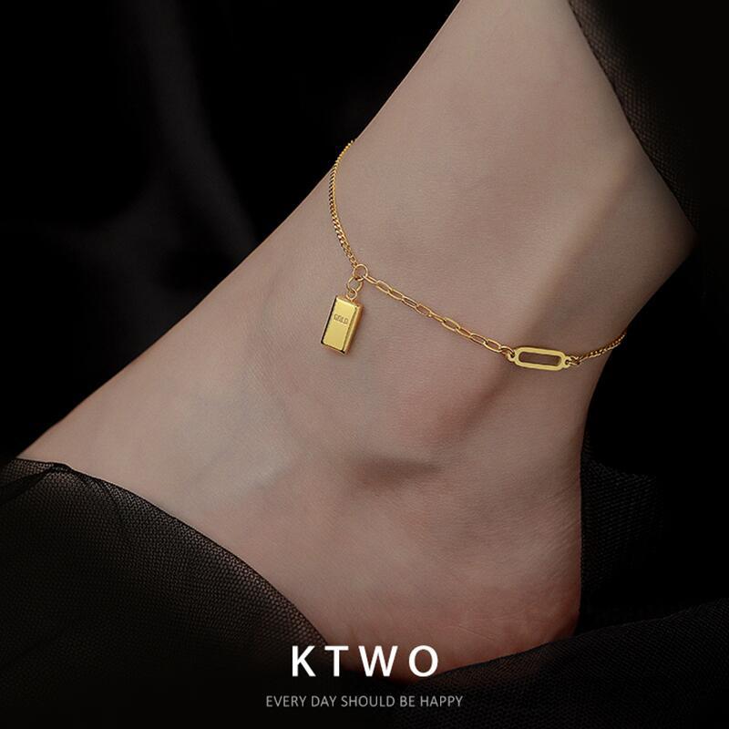 欧美高级感时尚百搭金砖脚链女镀18k金色冷淡风轻奢小众夏季足链