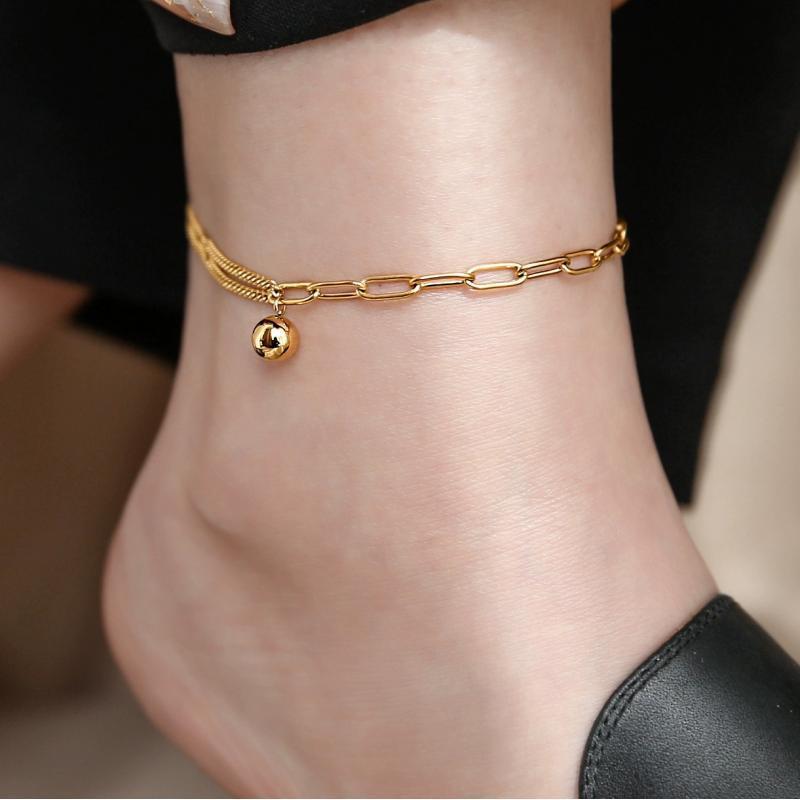 高级感小众金色拼接链条金球脚链女不掉色轻奢ins风礼物