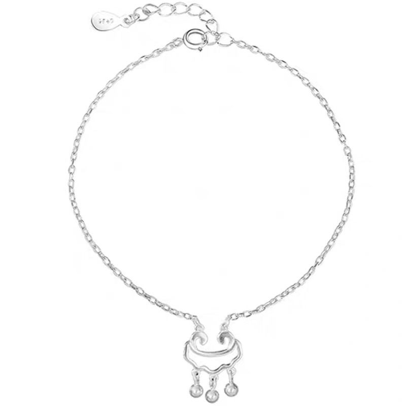 S925银长命锁古风森系脚链子女款性感简约学生个性气质网红脚饰