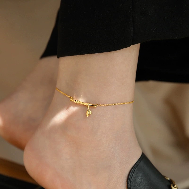 竹节细脚链节节高升钛钢竹叶脚踝足链新中式文艺复古不掉色