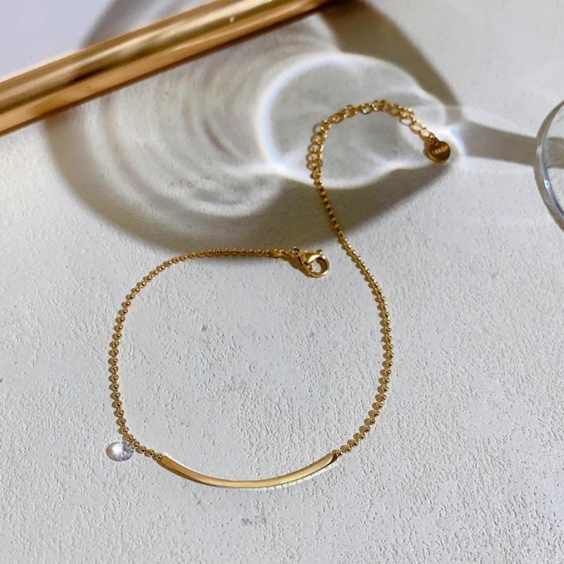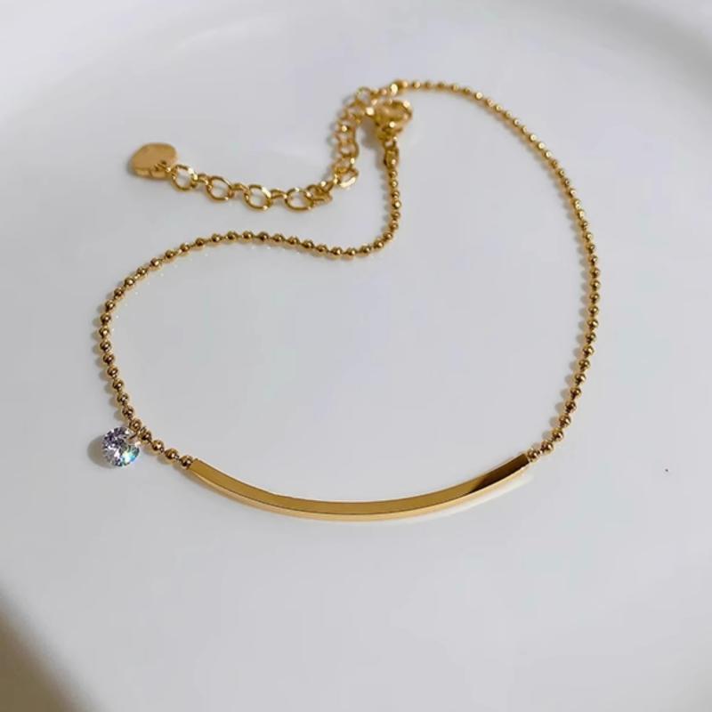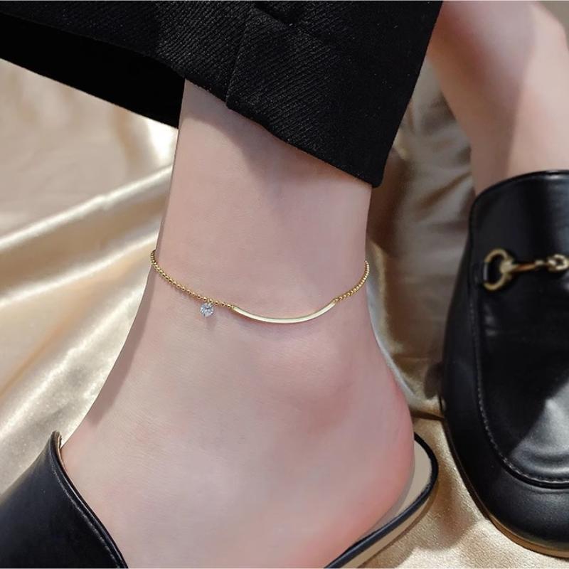 单钻微笑脚链女新款高级感18k金小众性感女生足链钛钢不掉色