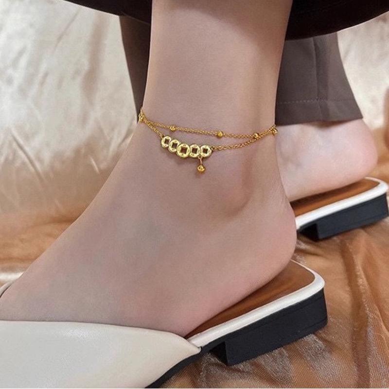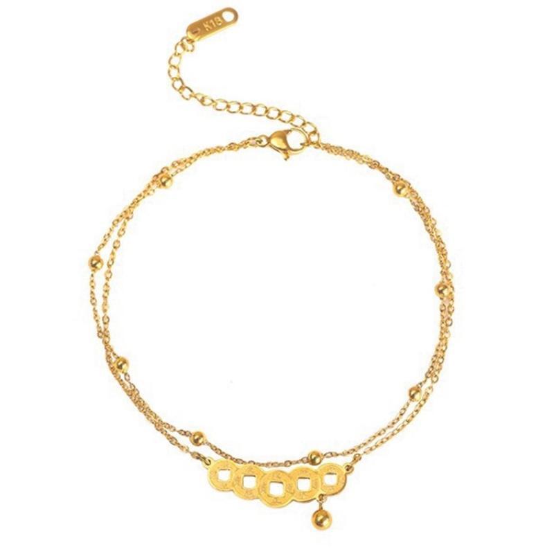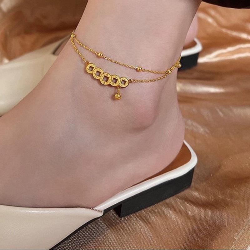 复古铜钱新款足链女人足链钛钢不掉色小众设计铃铛脚裸链性感